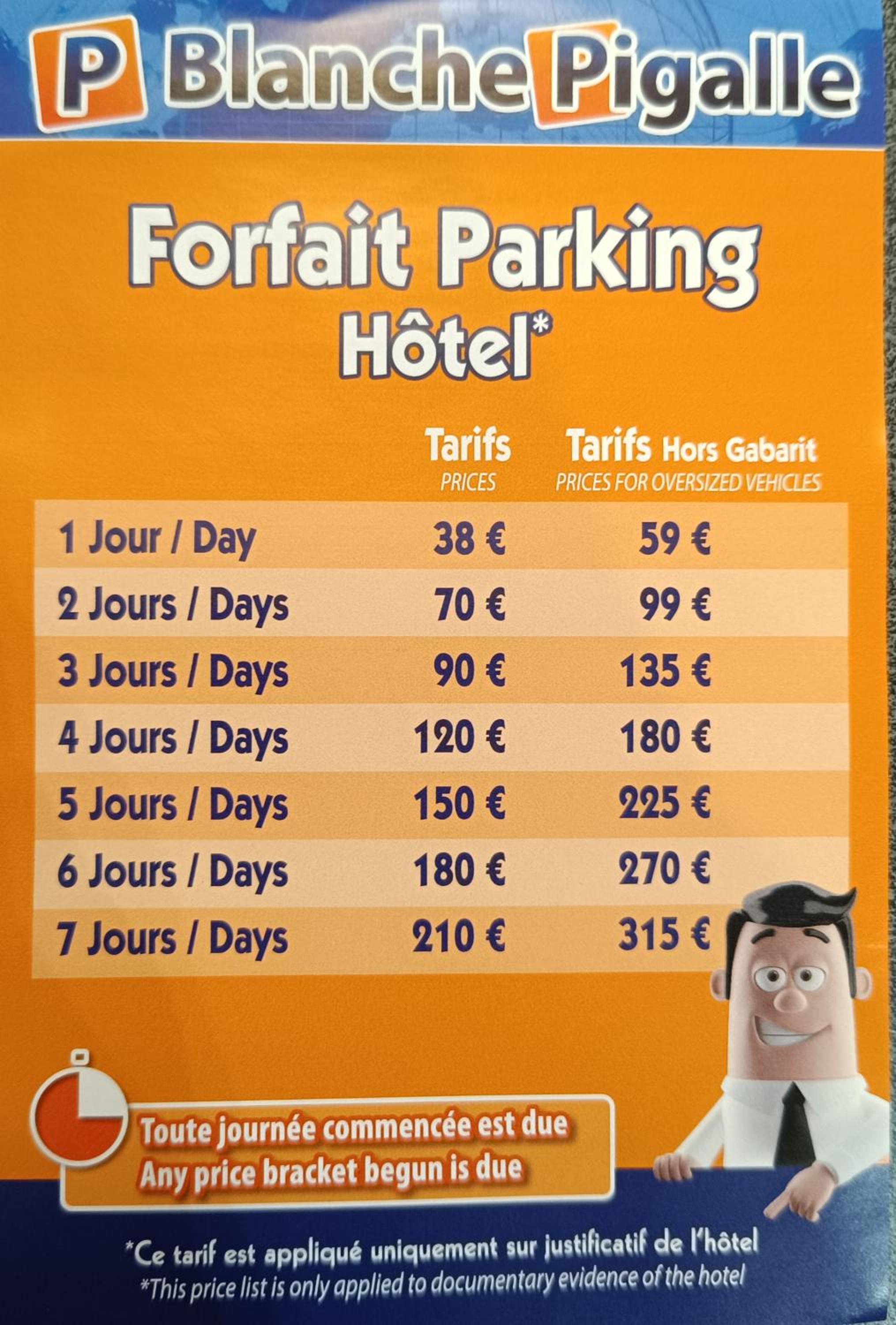 Public parking is possible at a location nearby (reservation is not needed) and costs EUR 35 per day.