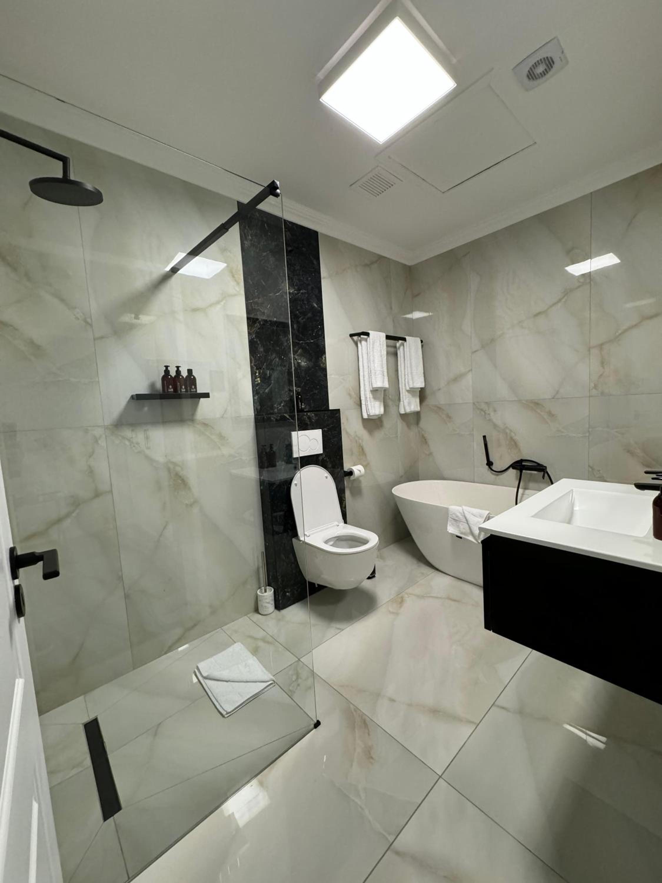 Douche was te klein bij als gevolg heel de badkamer onder water …….