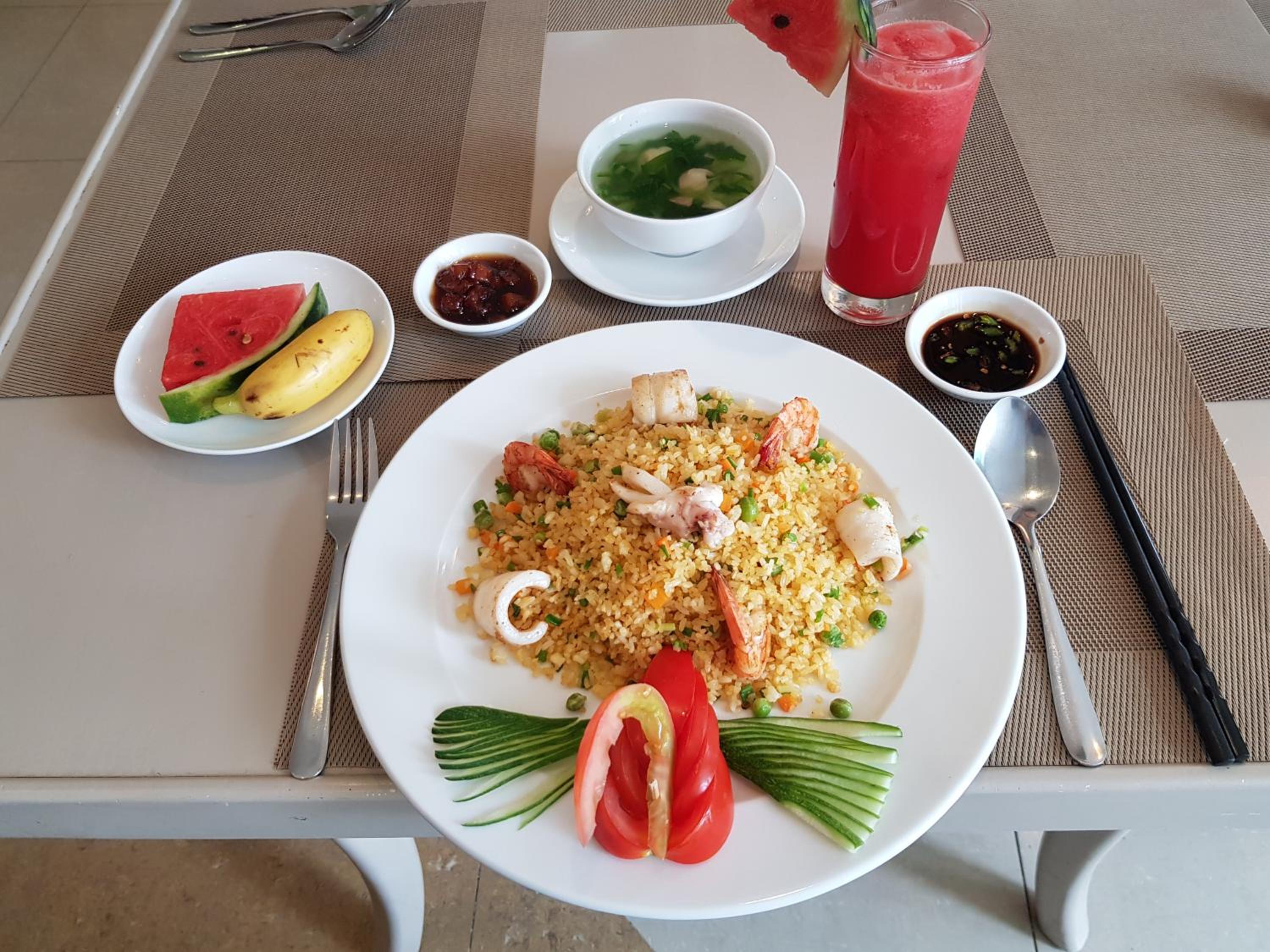 Все супер, единственное не хватает у бассейна шезлонгов как и чистки самого бассейна :) завтрак персонально по меню приносят блюда - на выбор Английский завтрак ( яичница с сосиской и беконом) либо омлет с тем же набором, суп фо бо, местная лапша несколько видов, спагетти 2 вида, салат цезарь 2 видов. Фрукты и 1 сок каждый день разные в зависимости от сезона. Уборка каждый день, но мы иногда вешали табличку не беспокоить тк итак все чисто было 🌺 еще обязательно сюда вернемся 😇