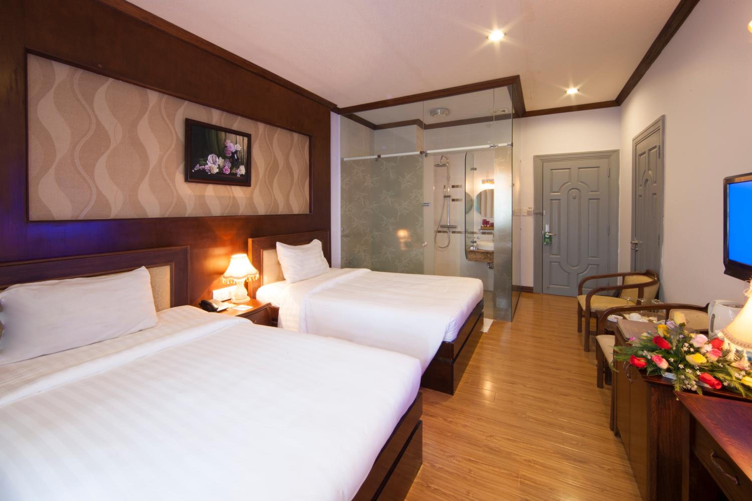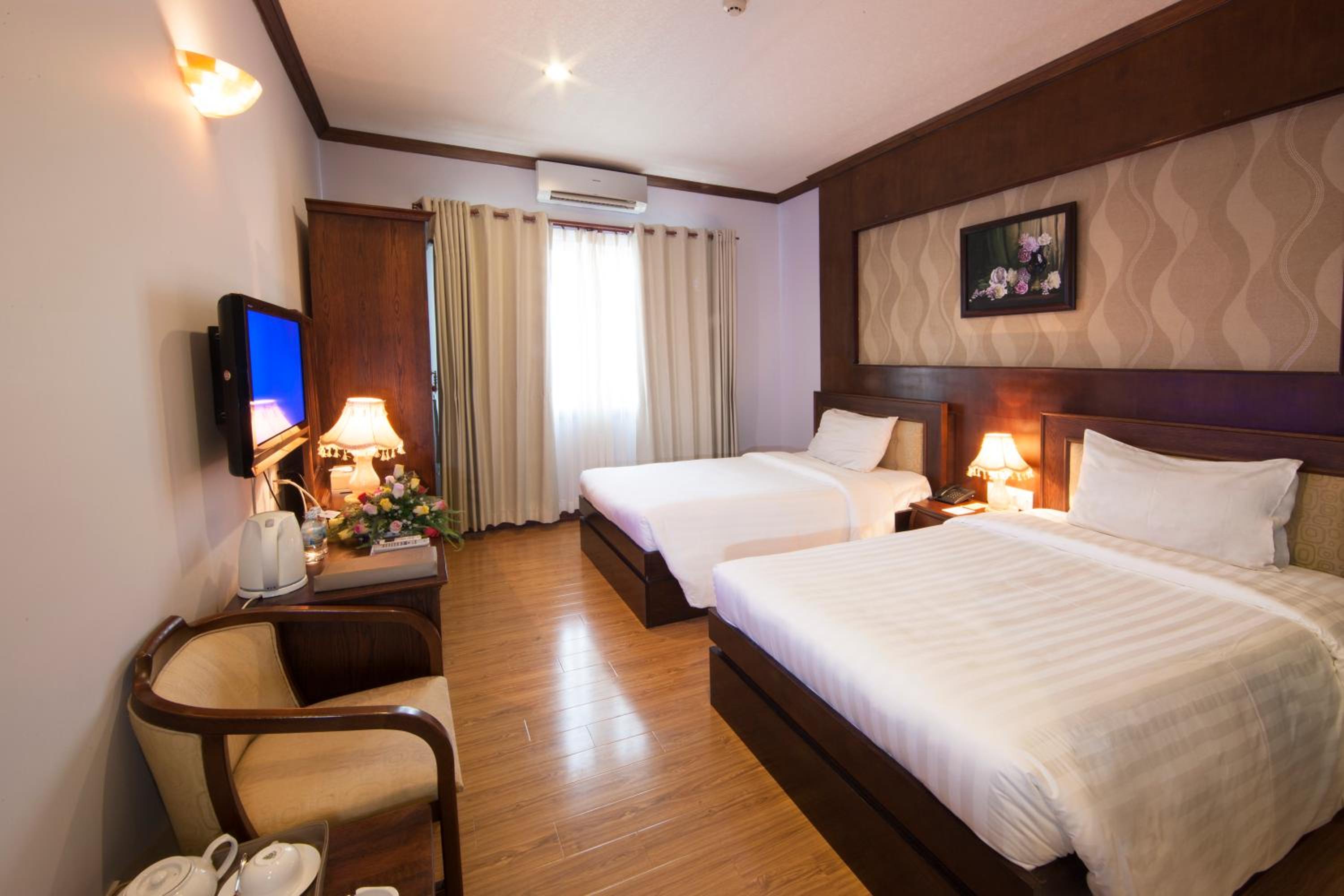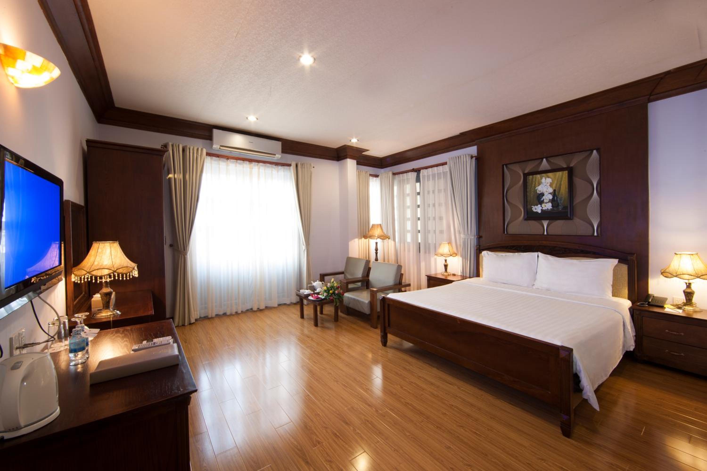 The air-conditioned rooms at Rembrandt Hotel Nha Trang are well-equipped with essential amenities such as a flat-screen TV, minibar, and safety deposit box. The private bathrooms feature a bidet, and the cozy ambiance is complemented by free WiFi and a desk for added comfort.