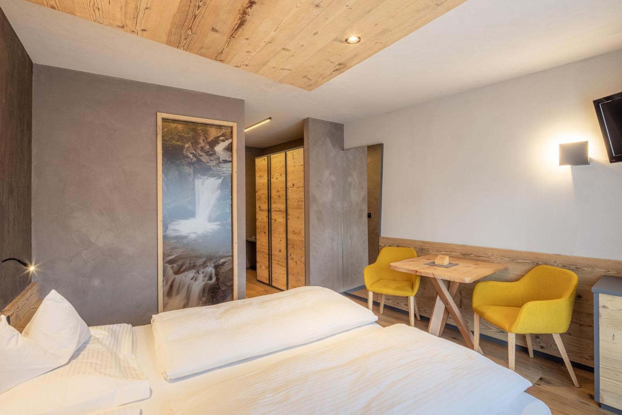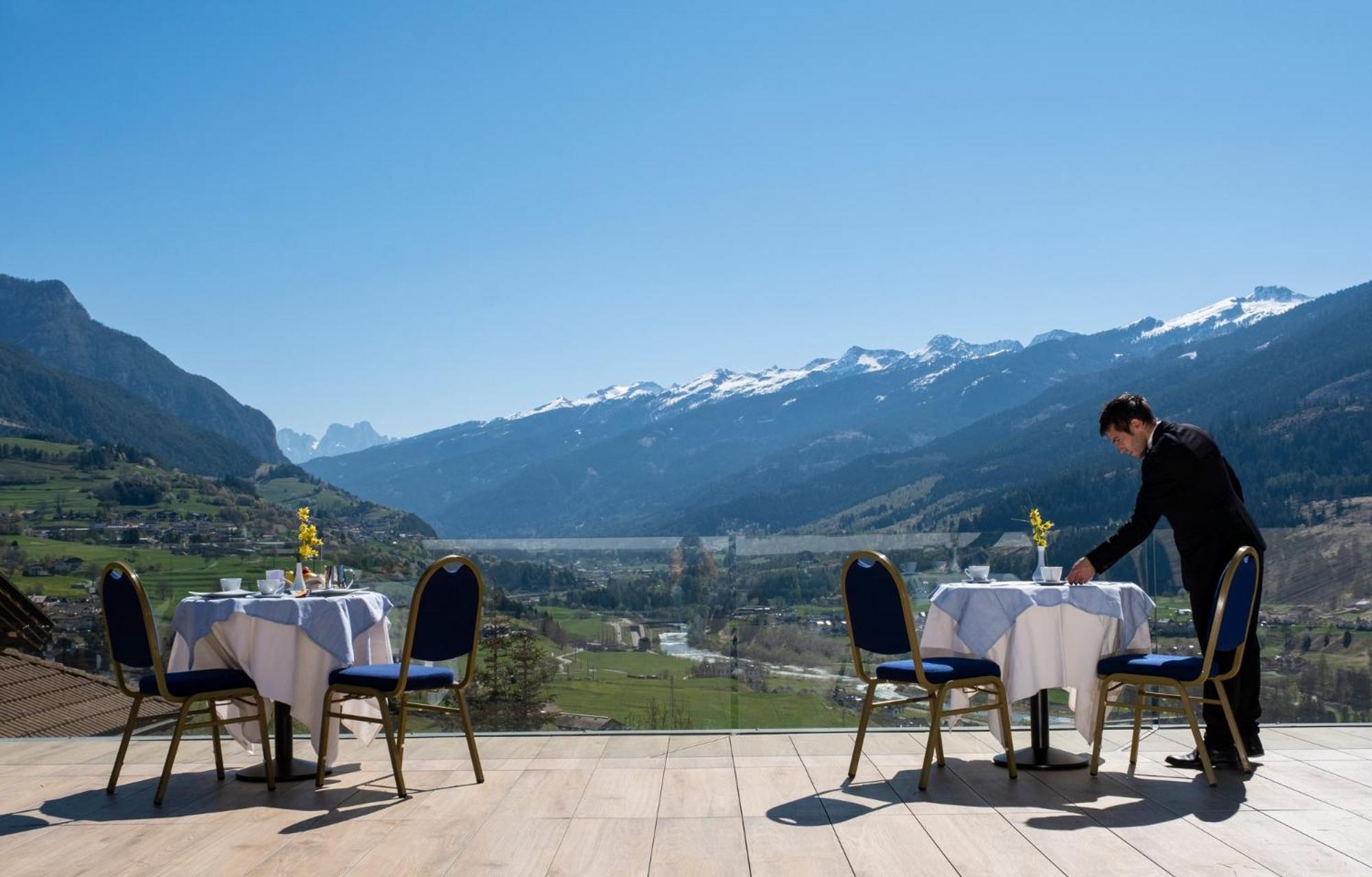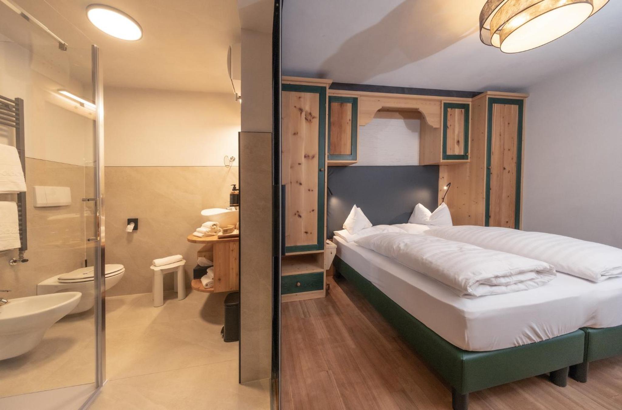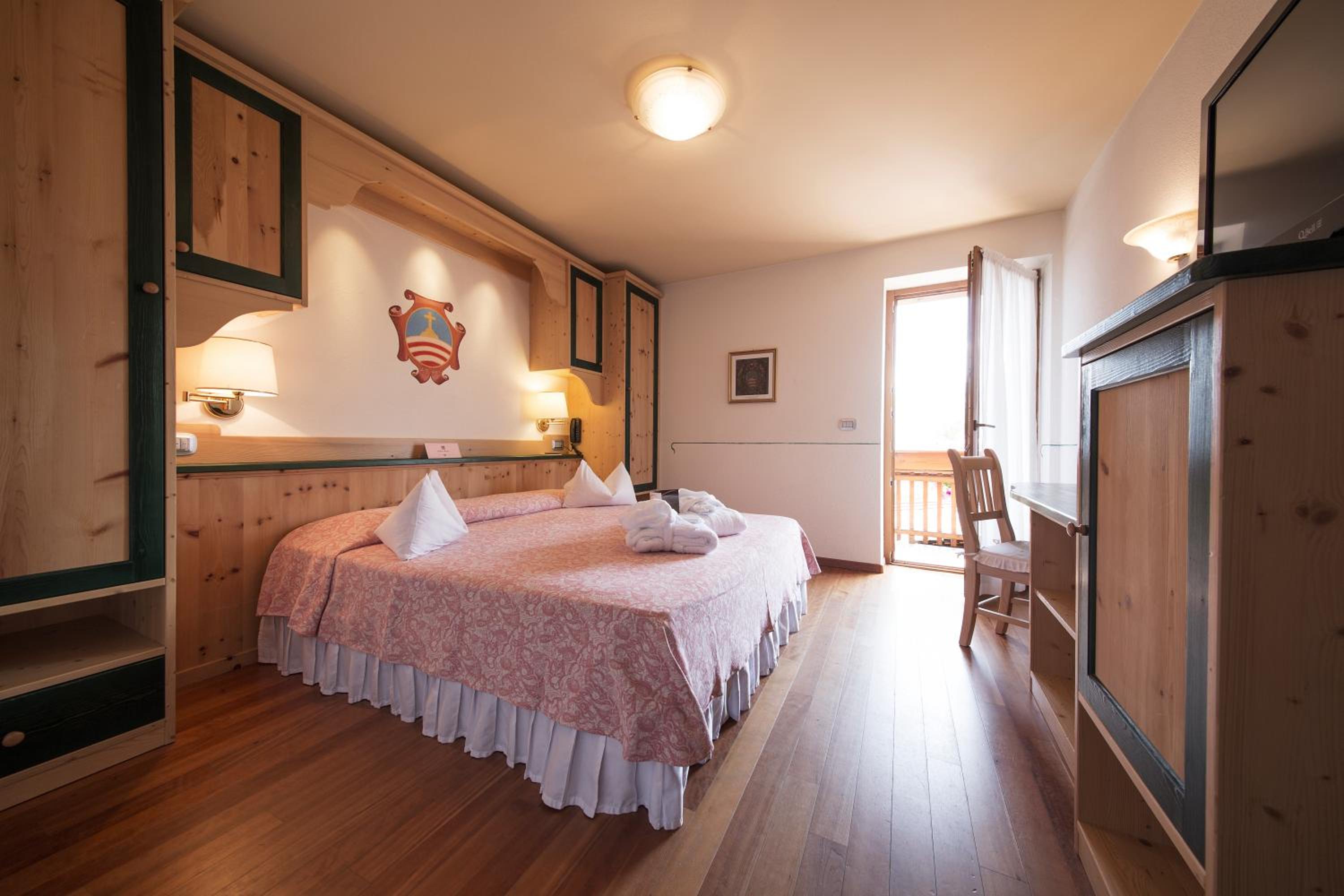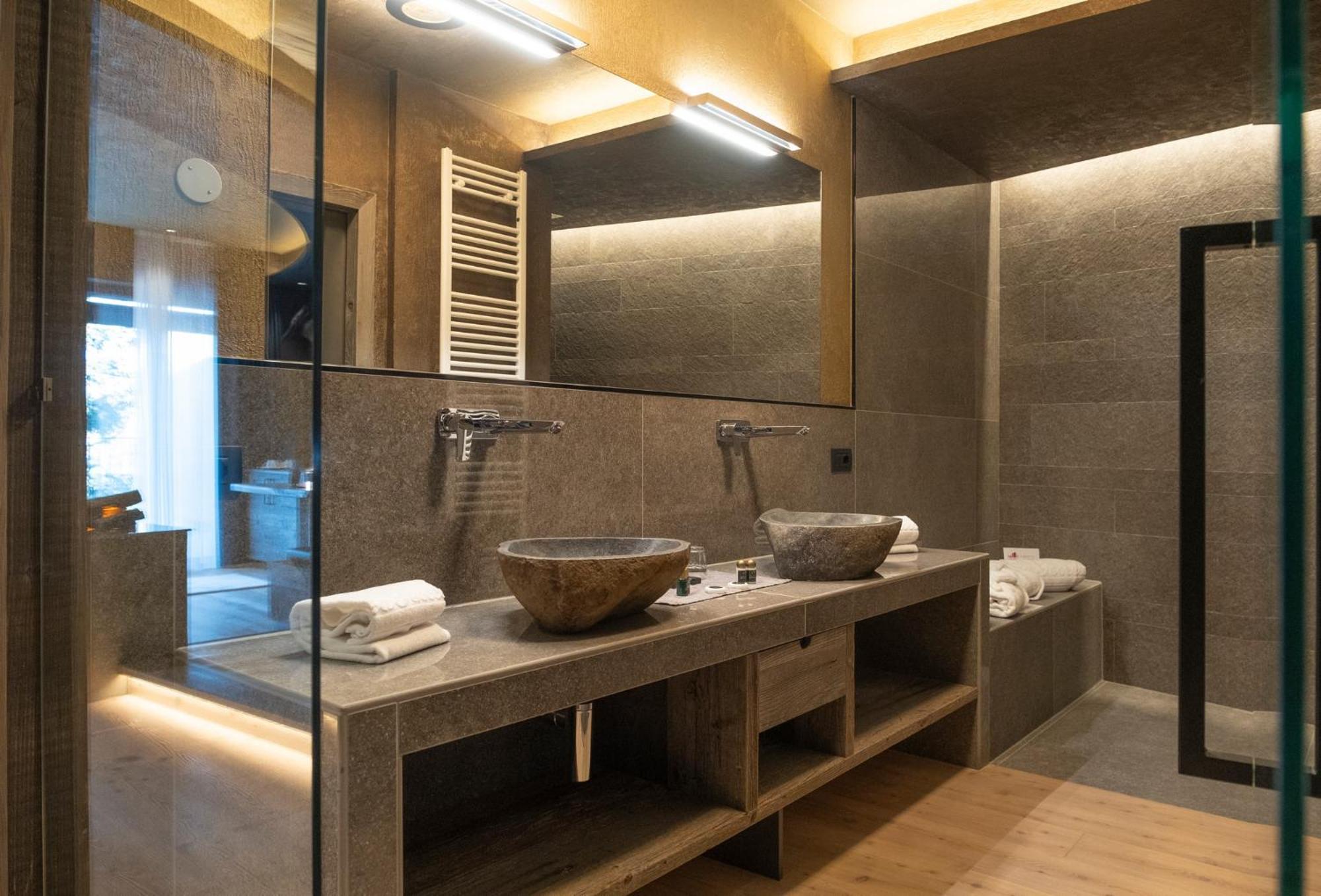 La Roccia Wellness Hotel offers spacious rooms and luxurious suites with balconies, some showcasing stunning valley views. Indulge in the spa's sauna, Turkish bath, hot tub, and relaxation area with local wood deckchairs.