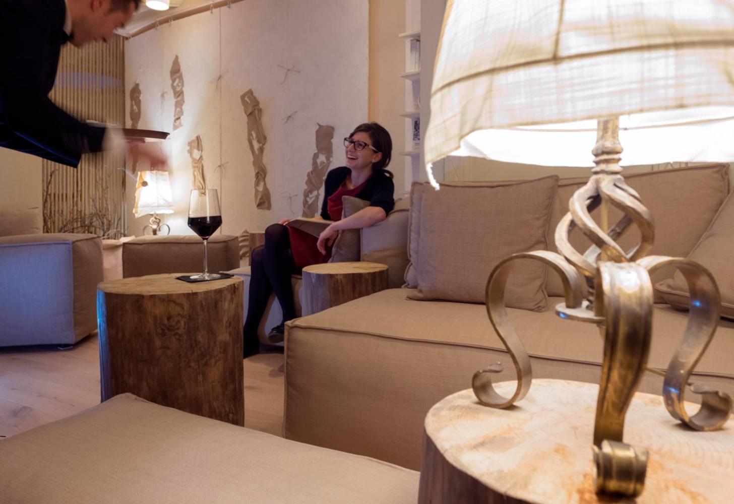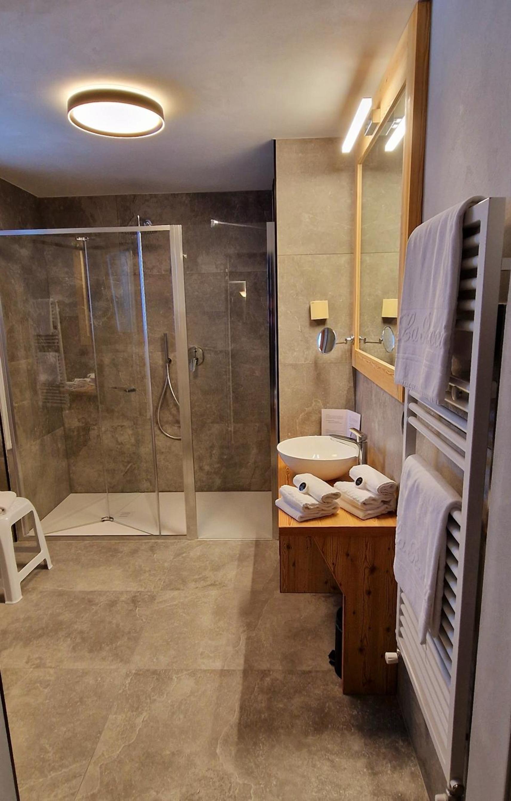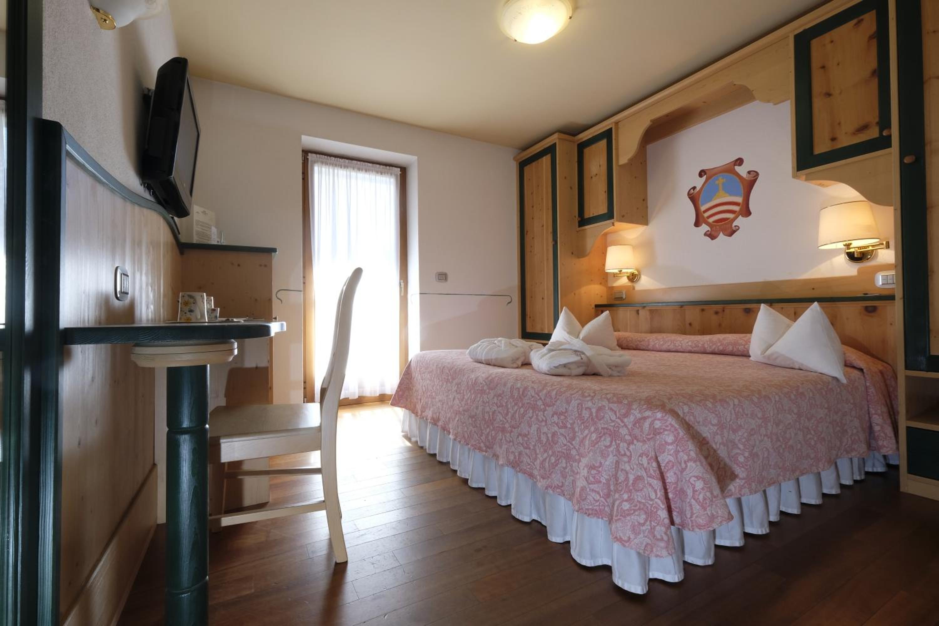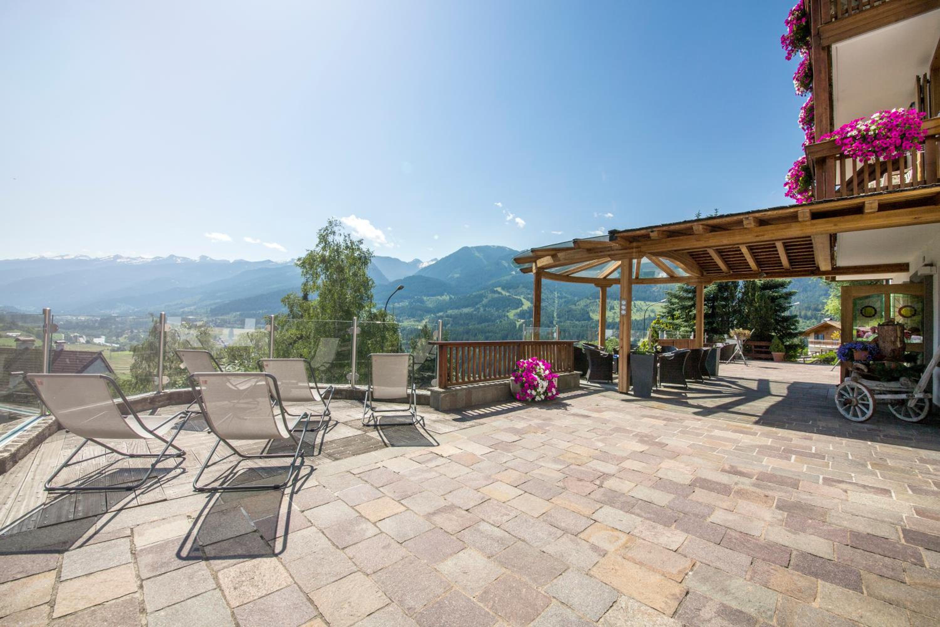 La Roccia Wellness Hotel offers spacious rooms and luxurious suites with balconies, some showcasing stunning valley views. Indulge in the spa's sauna, Turkish bath, hot tub, and relaxation area with local wood deckchairs.
