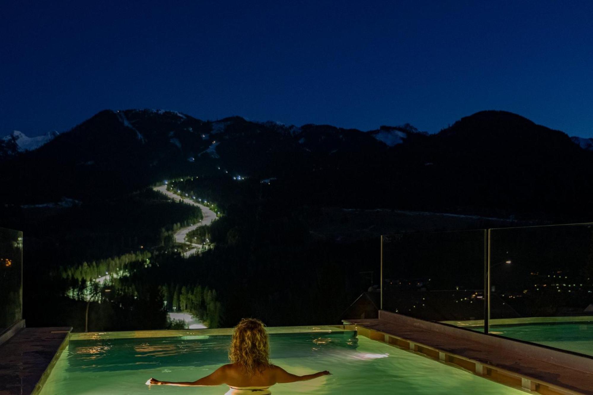 del benessere ispirato ai boschi vicini. Qui gli ospiti possono lasciarsi cullare dalle calde acque dell’Infinity