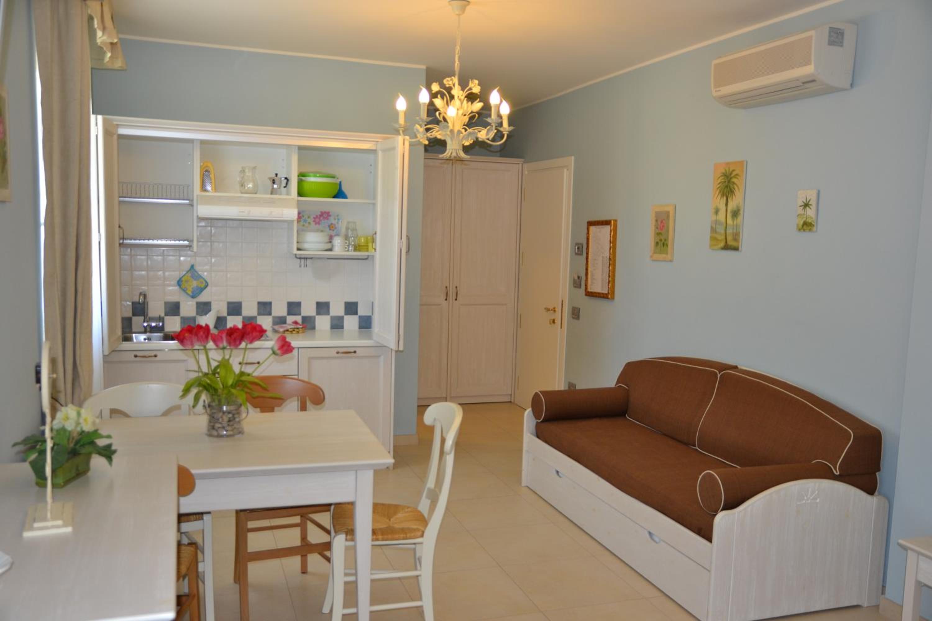 Struttura situata nella parte alta di Tortoreto, estremamente curata e attenta ai dettagli. Lo stato di manutenzione è tale da farla sembrare appena aperta. Comodo il monocale con angolo cottura e grande cura degli arredi, anche quelli del terrazzino privato. Ampi spazi all'aperto, dal solarium alla bellissima piscina con idromassaggio, alla sala con ping-pong, videoproiettore e possibilità di usare anche le biciclette gratuitamente. Super funzionale la palestra attrezzata con macchine professionali. Gentile e disponibile tutto lo staff. Ampio parcheggio e posizione silenziosa. In 10 minuti a piedi si arriva al centro del borgo alto, con 5/7 di macchina invece sul lungomare. Lo consigliamo sicuramente