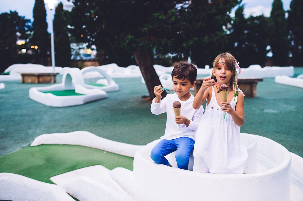 This hotel is great for families. It gives you a resort style of place without any of the resort amenities. Has 2 big pools (although you have to wake up super early to get chairs and an umbrella). Has a cala which is so convenient. It's about an 18 minute walk to the town centre. Has restaurant options about 100 metres away. My issues with this hotel is the rooms need upgrades (at least the building we stayed on). We had to carry all our luggages to the 3rd floor since there were no elevators on our building. We were a family of four with a toddler. They have no one that offers to help. Plus parking can be a pain, depending on the hour you came back to the hotel. One of the nights, we had to park 5 blocks away because there was no parking on the premisses or near the hotel. If non of this bothers, location is great but don't expect luxury. It wasn't cheap either