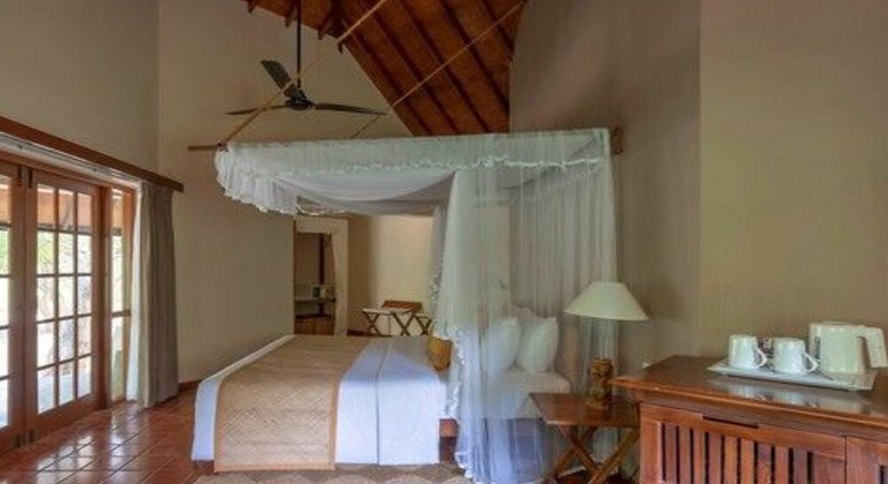 It is ideally located close to the national park with a lovely on-site lagoon filled with birds, water buffalo and crocodiles (all at a safe distance). The staff is great but be aware that given there are no barriers between you and the national park, they have to escort you to and from your room for safety once it gets dark.