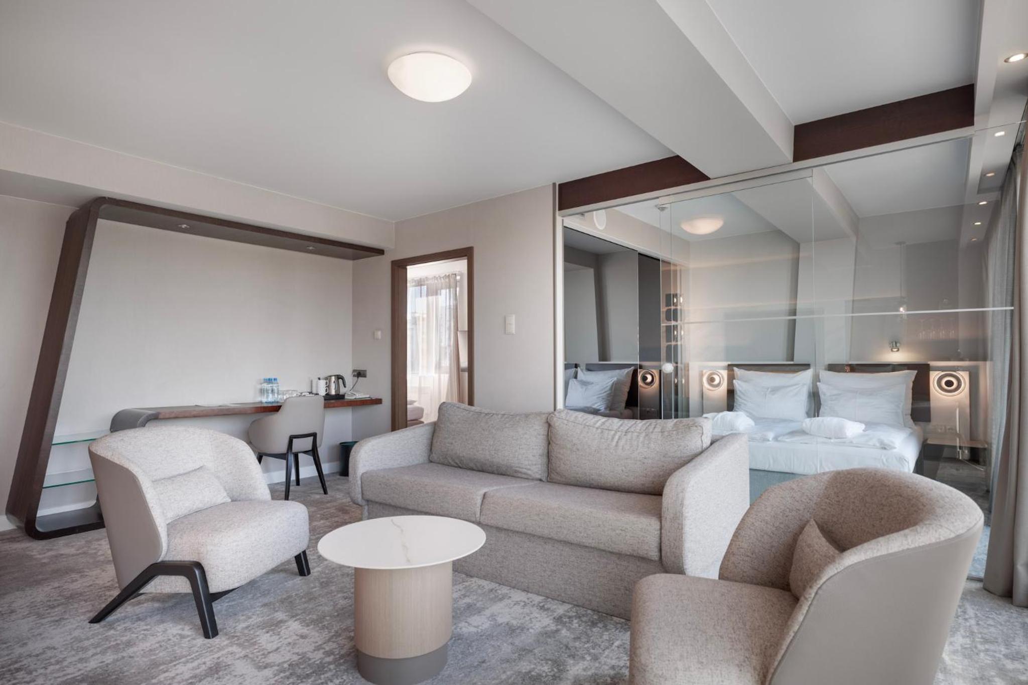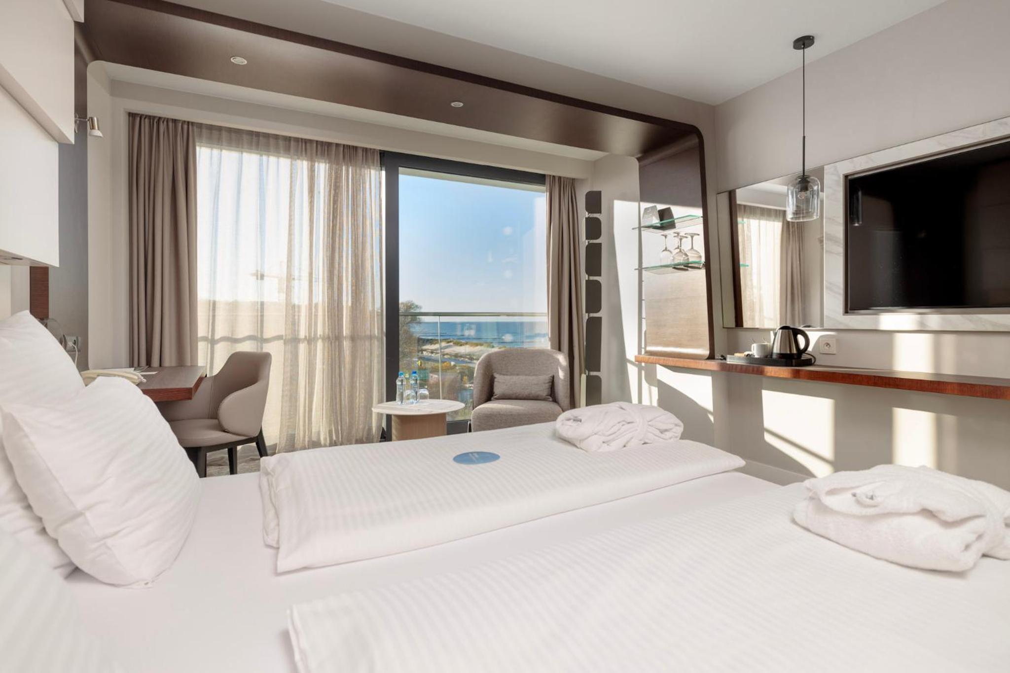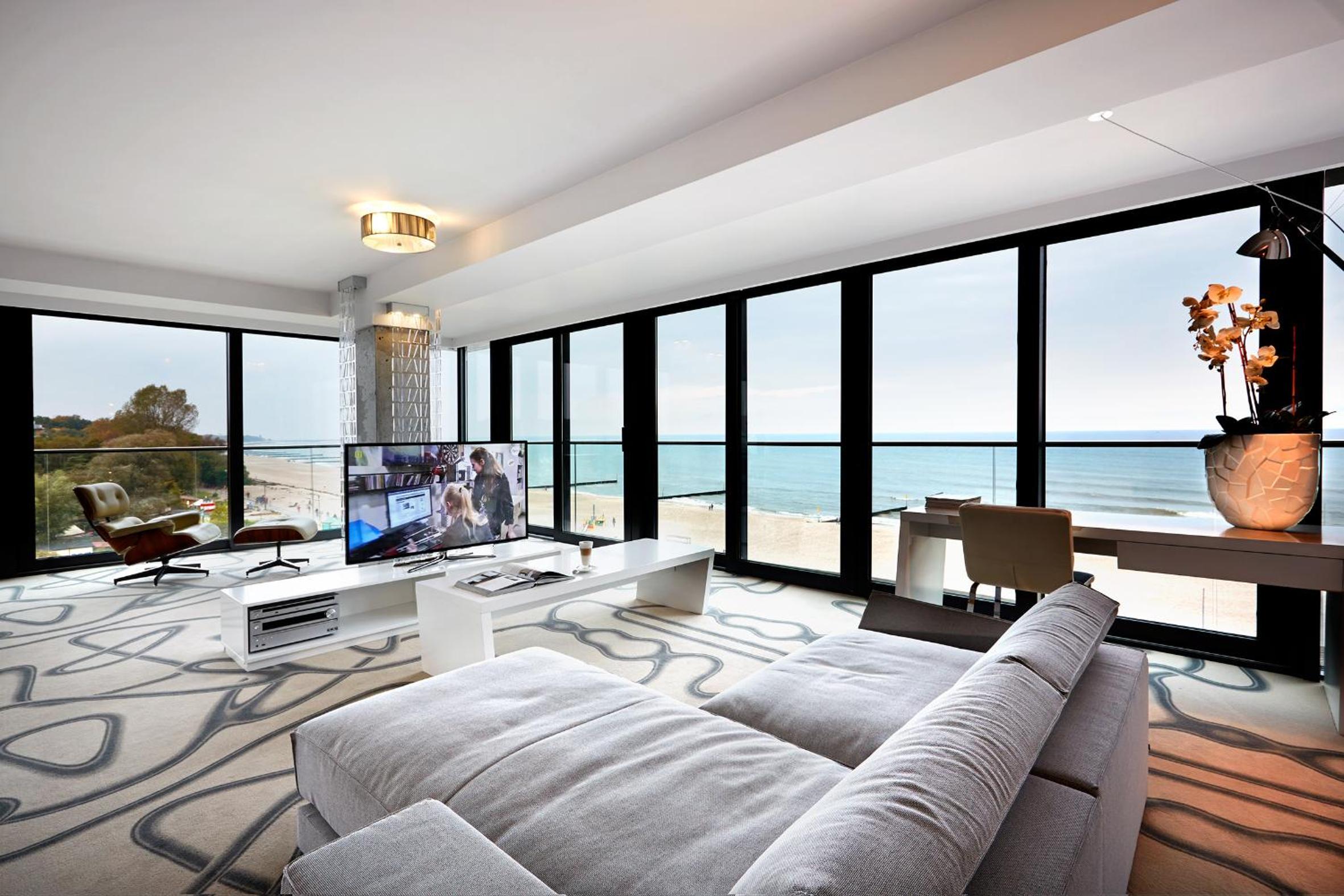 The Marine Hotel in Kołobrzeg offers a luxurious stay right by the beach front. The designer building provides air-conditioned rooms with free WiFi and stunning views of the Baltic Sea. Each apartment boasts designer furniture, a flat-screen TV, and a private bathroom with a shower.