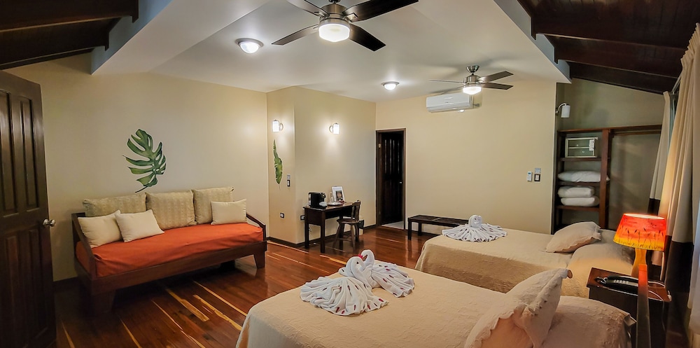 OMG we loved this place. Best part of out 10 day trip that included Arenal and Manuel Antonio. Great early birding tour, and saw tanagers and kingbirds from our balcony. The cabins and walkways are of beautiful wood, nestled in trees and flowers.