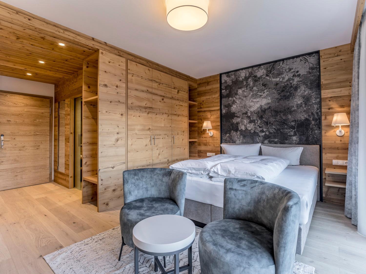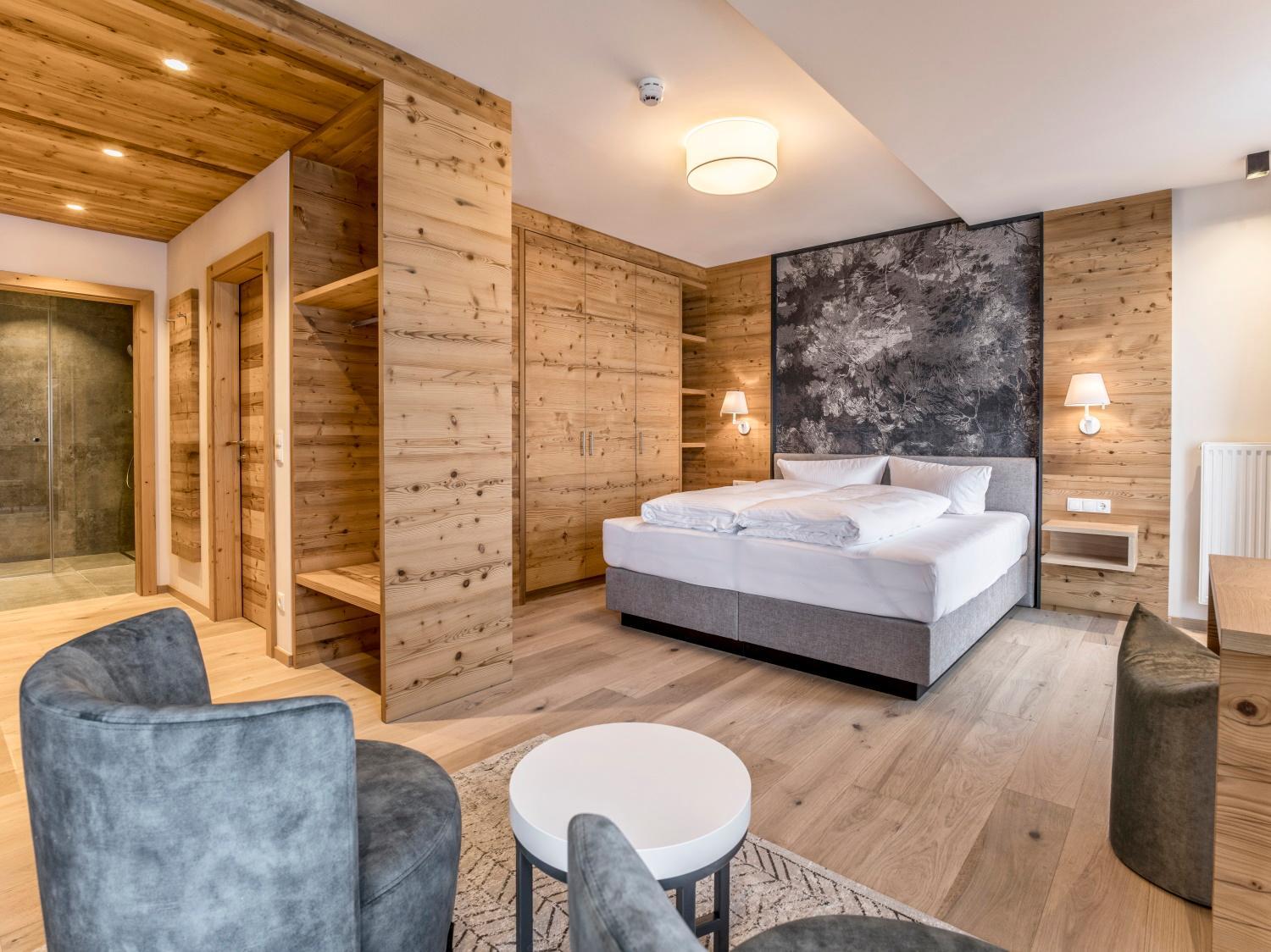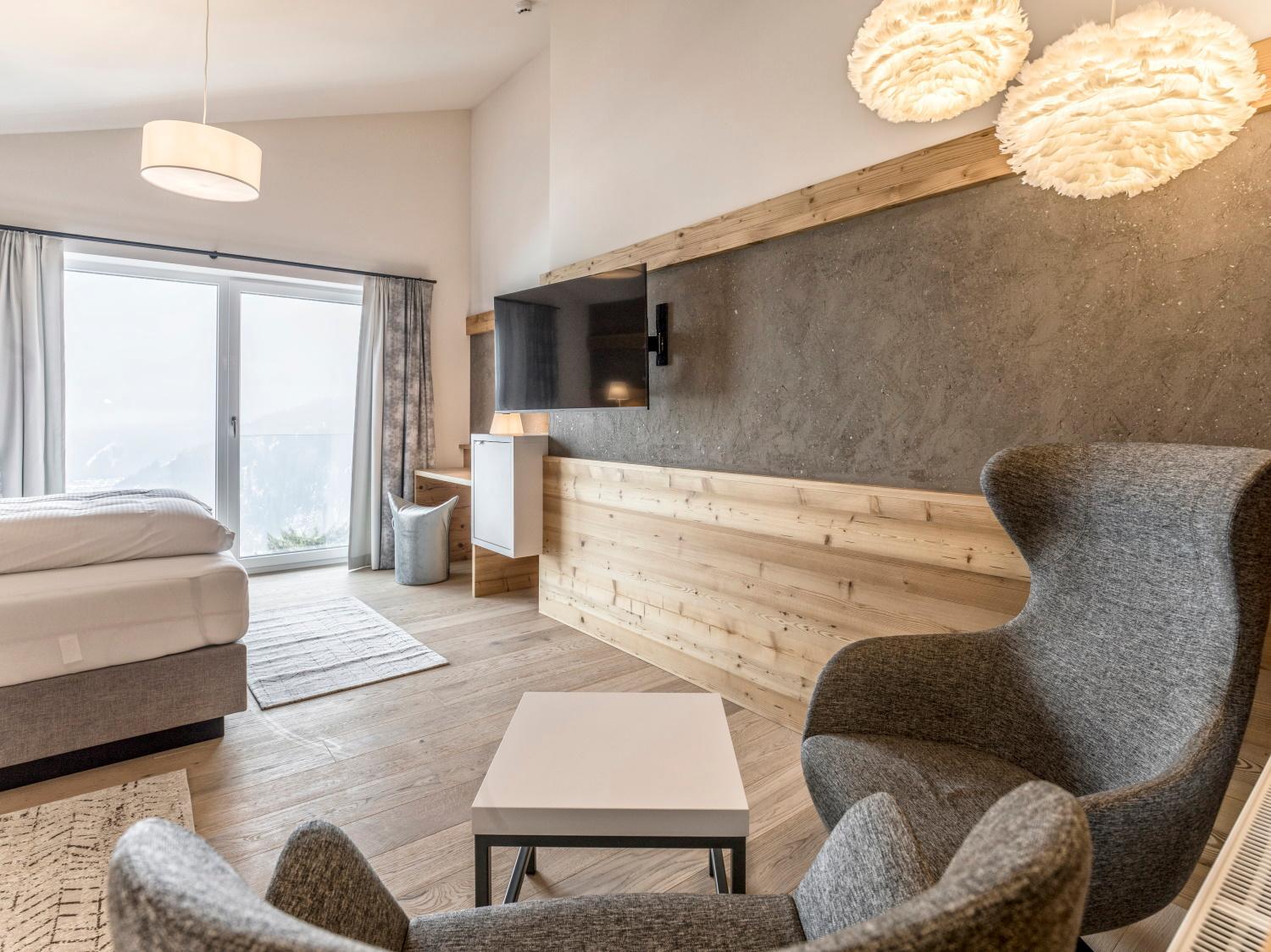 Das Hotel wird familiär geführt und die Inhaber sind sehr nett . Auch das Personal ist sehr freundlich und verbreitet jeden Morgen gute Laune. Wir waren vor 7 Jahren zum letzten Mal hier und das Personal ist zum großen Teil noch das Gleiche, das spricht für sich. Wir haben die Juniorsuite Natur gebucht. Das Zimmer war wunderschön, sehr groß und mit ausreichend Schränken und hatte ein tolles Badezimmer. Wir haben jeden Nachmittag den Saunabereich genutzt. Auch das Essen war sehr lecker. Super war auch der Skiverleih direkt im Hotel. Der Skibus kam immer pünktlich und bringt einen in 3 Minuten zur Talstation. Wir können die Aussicht auf jeden Fall weiterempfehlen.