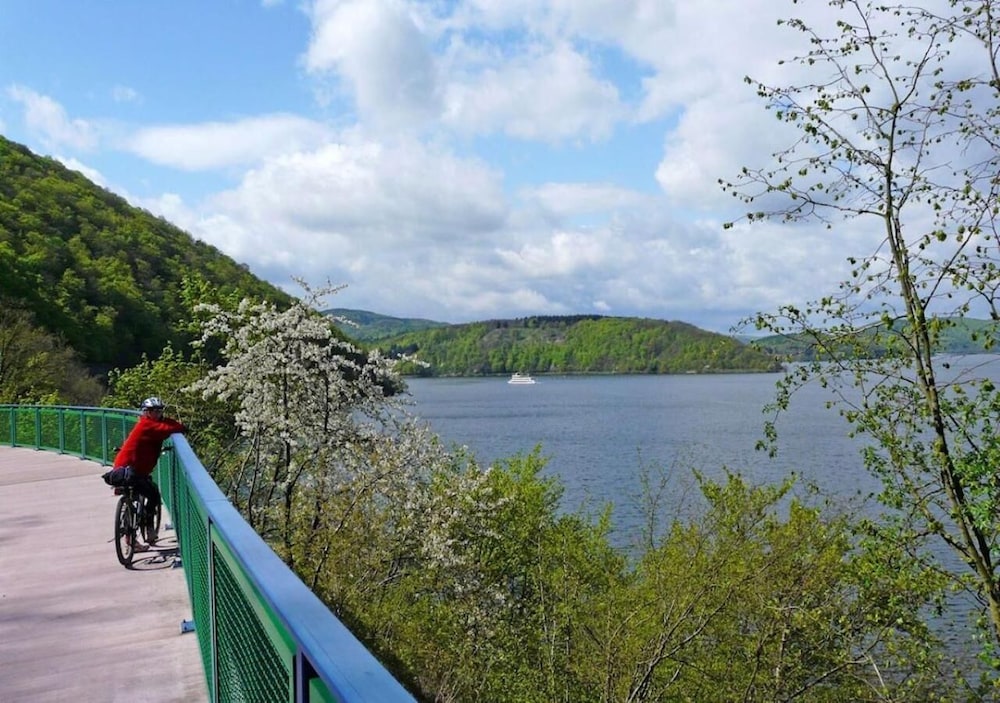 Ein sehr gepflegtes Haus mit guten Betten, vielfältigem Frühstück und schmackhaftem Dinner. Der Wellness-Bereich mit Schwimmbad und 2 Saunen ist gemütlich und lädt zur Entspannung nach anstrengenden Wanderungen ein. Ideal gelegen für Wanderungen auf dem Urwaldsteig und dem Edersee-Wanderweg.