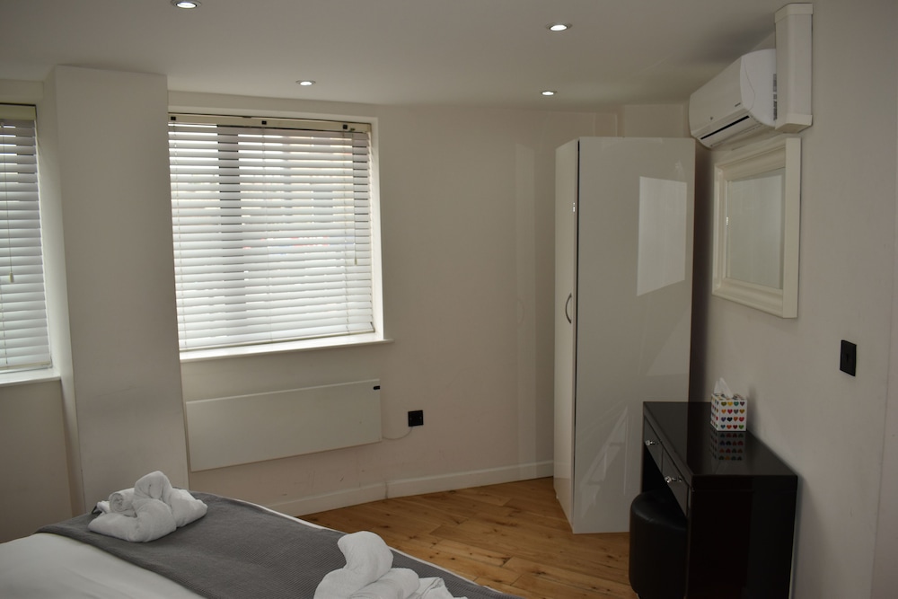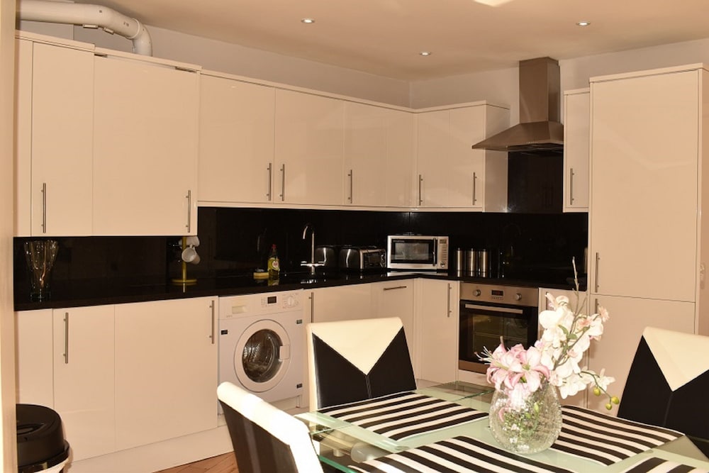 This is a nice, bright apartment. The local tube station is a good one, with easy access to the city for going to shows etc. The local supermarket across the road and a great park just around the corner make the location a good one. The place was well equipped for us and our adult children, and the air-conditioners were appreciated for the week that we were there. The people at reception were helpful.