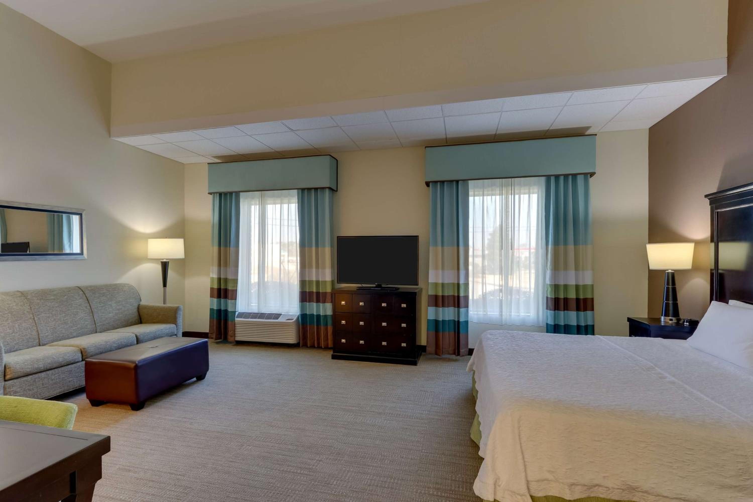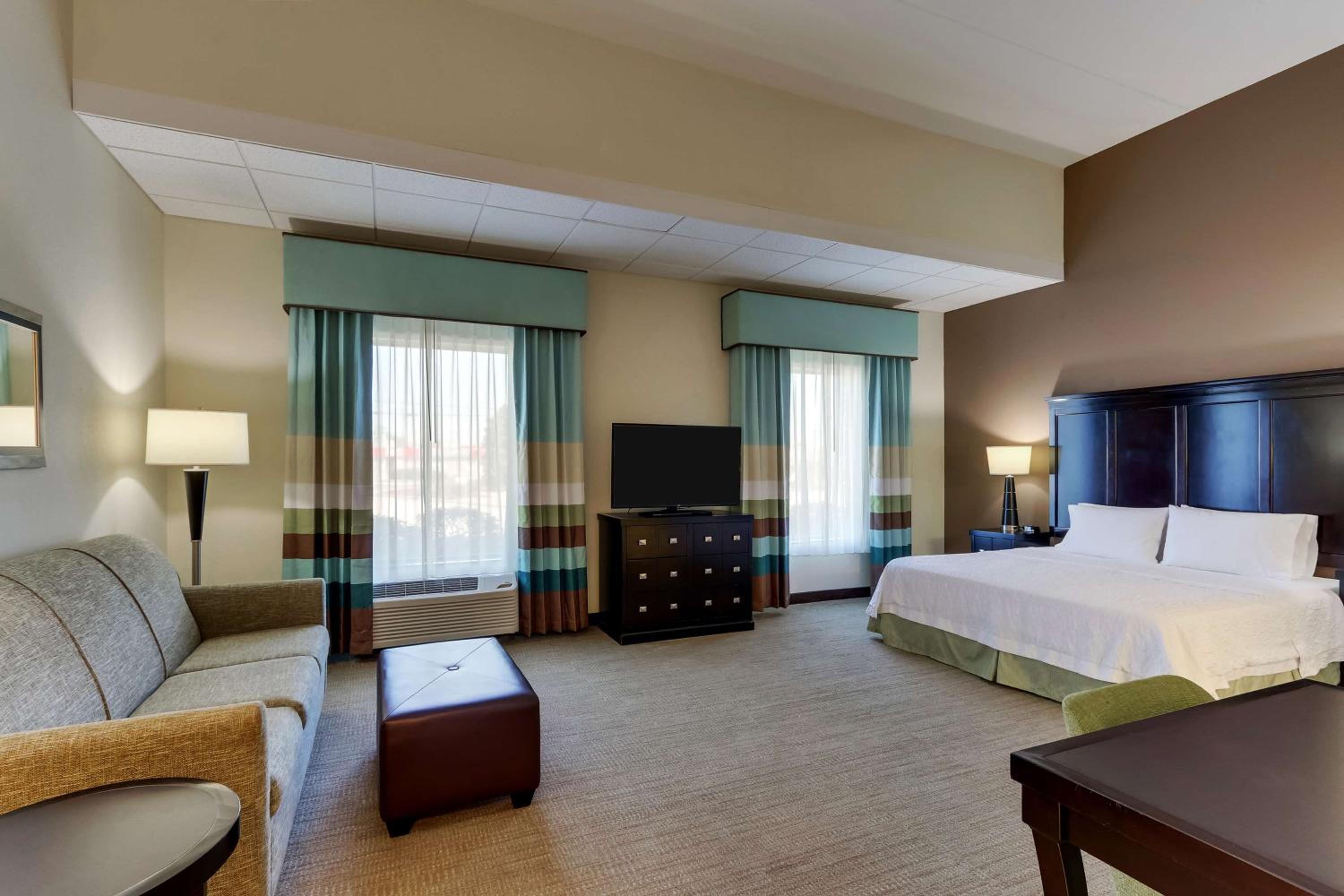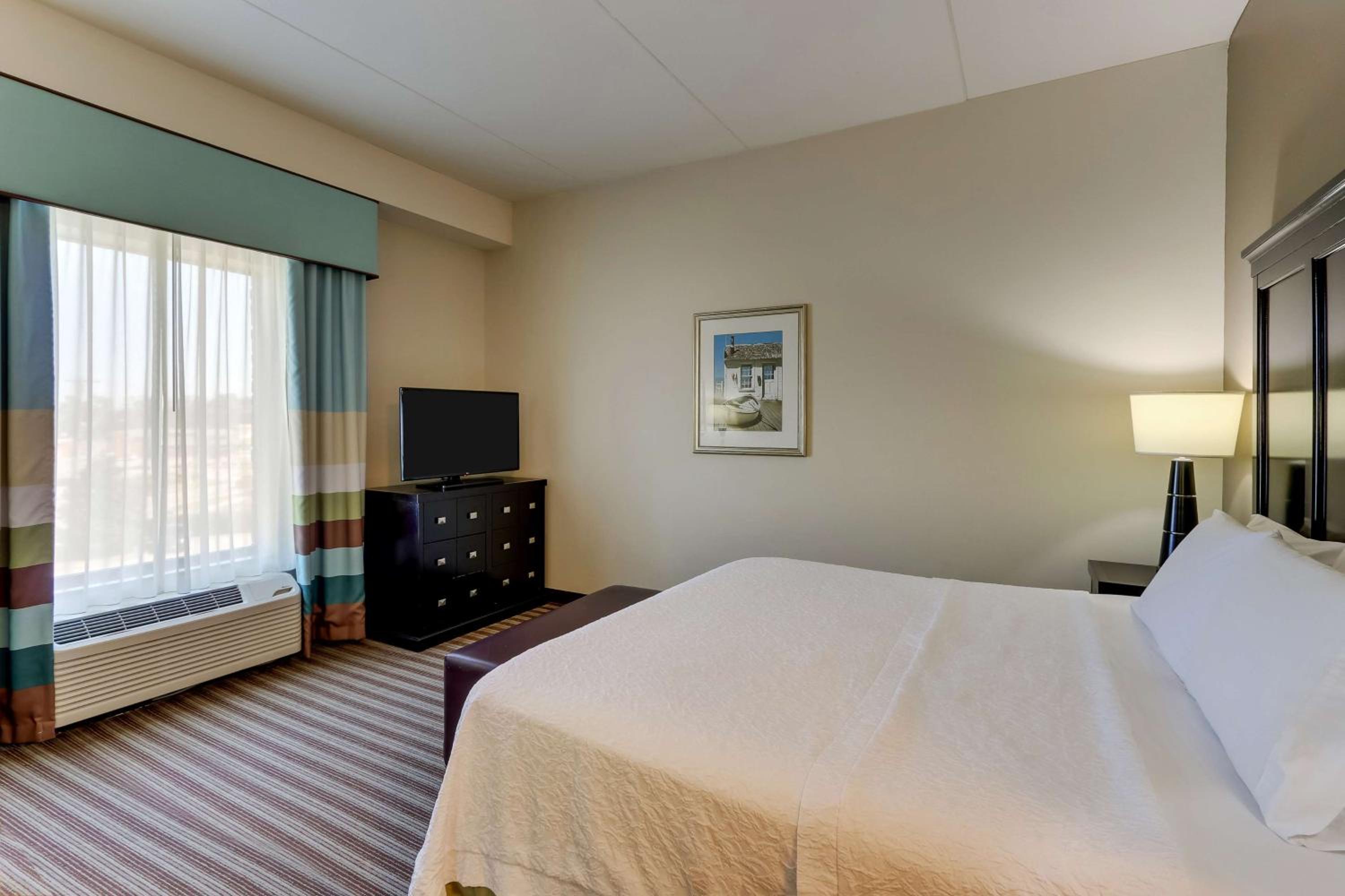 Each room at the Hampton Inn & Suites Swansboro is equipped with a flat-screen TV, coffee-making facilities, a work desk, and an iron, ensuring a comfortable stay for all guests.