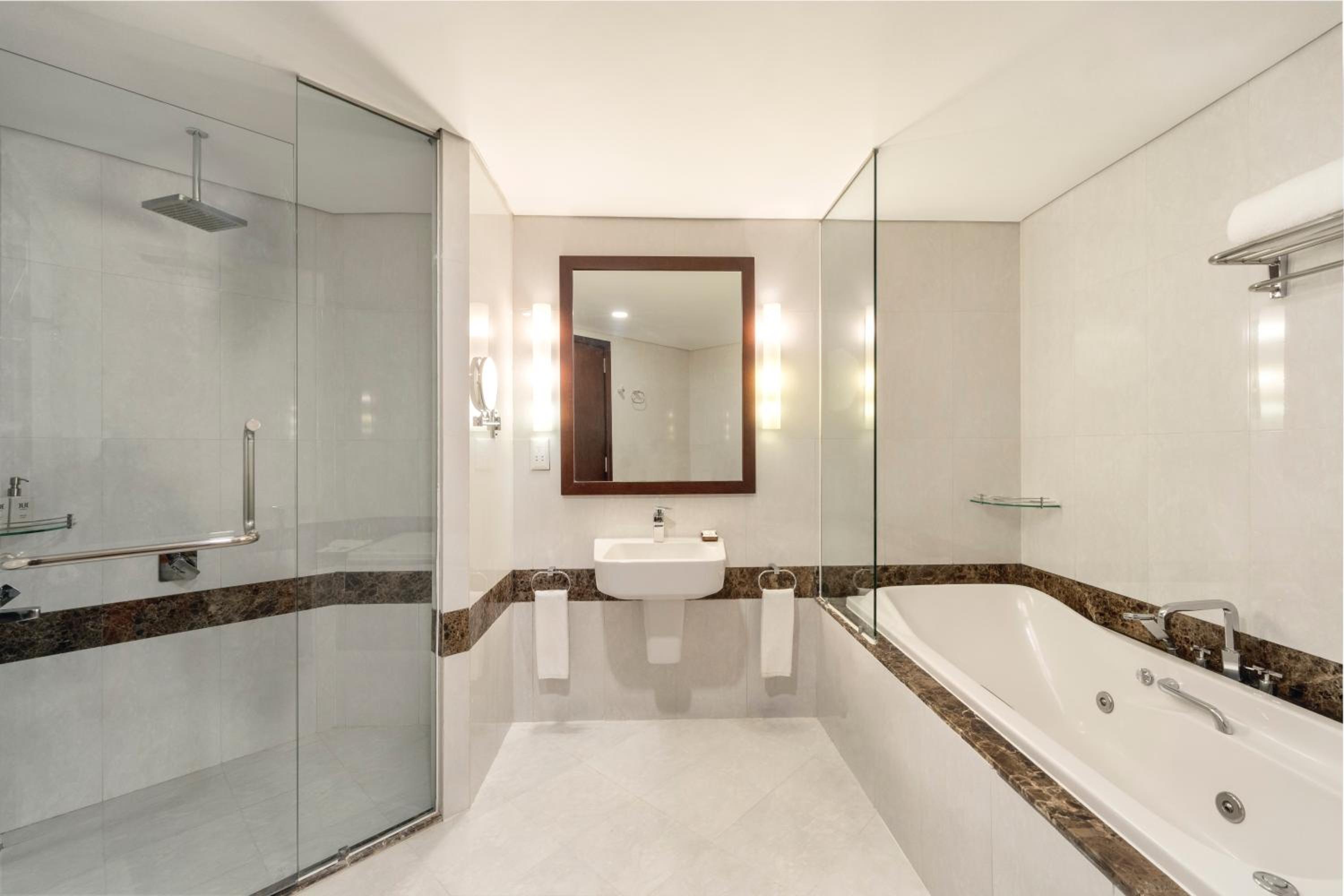 Excellent accommodation. Friendly and professional staff. The room exceeds my expectation, it is spacious with modern equipment and minimalism design. The absolute highlight was the bathroom with a fantastic large bathtub that was perfect for relaxing. Highly recommend!