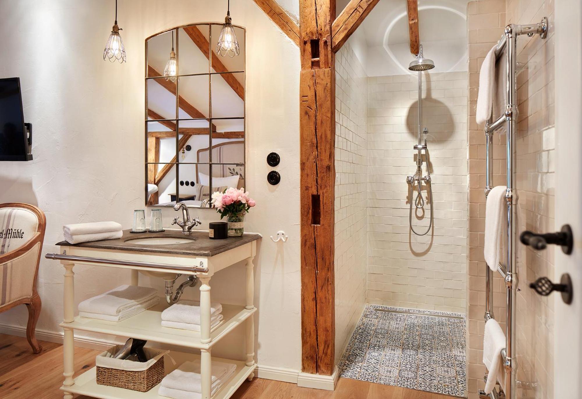 Sanitäre Einrichtungen passen so gar nicht zum Still des Gebäudes.