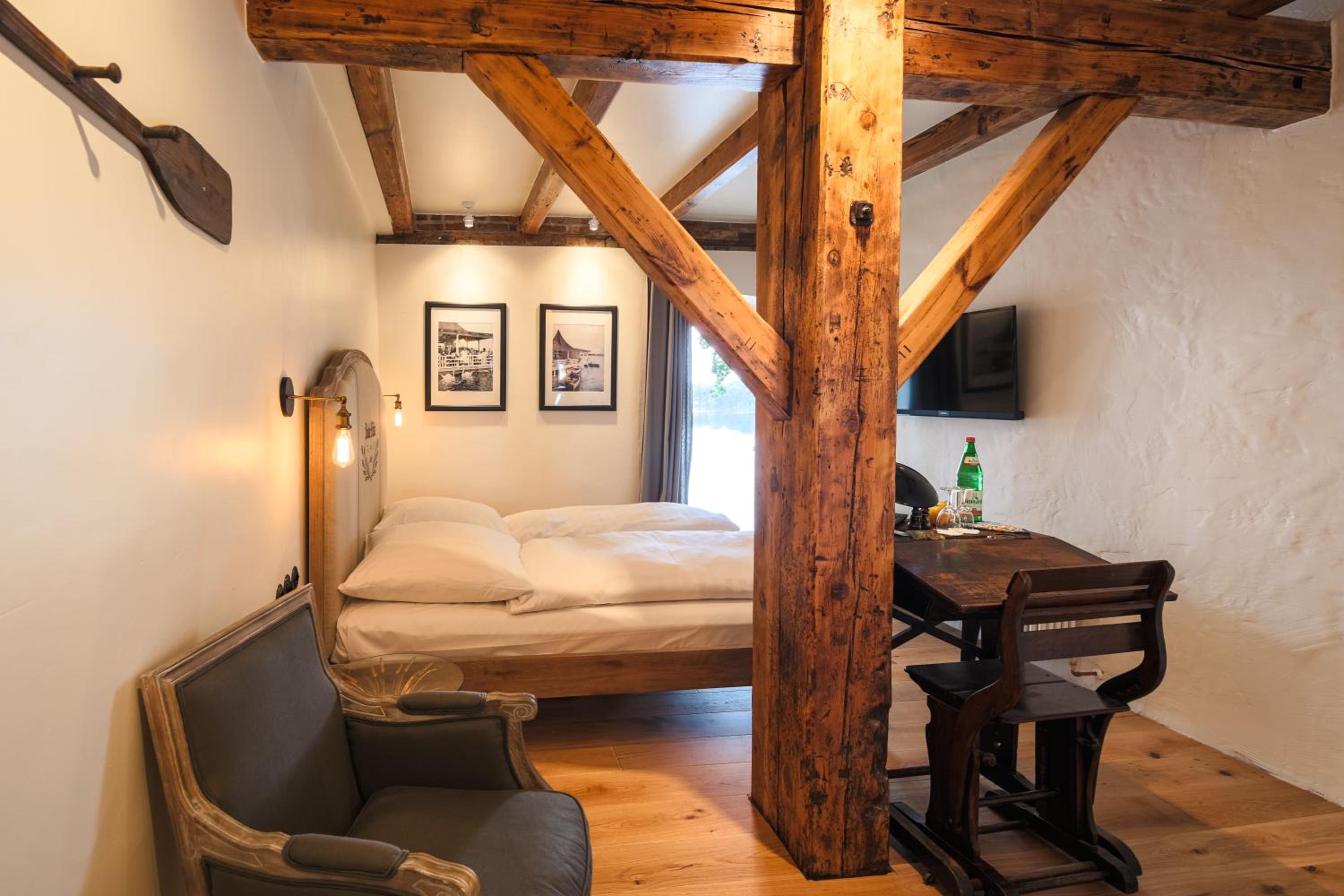 Savor regional cuisine at the Kaminzimmer restaurant with an open fireplace. Book now for a tranquil lakeside retreat!