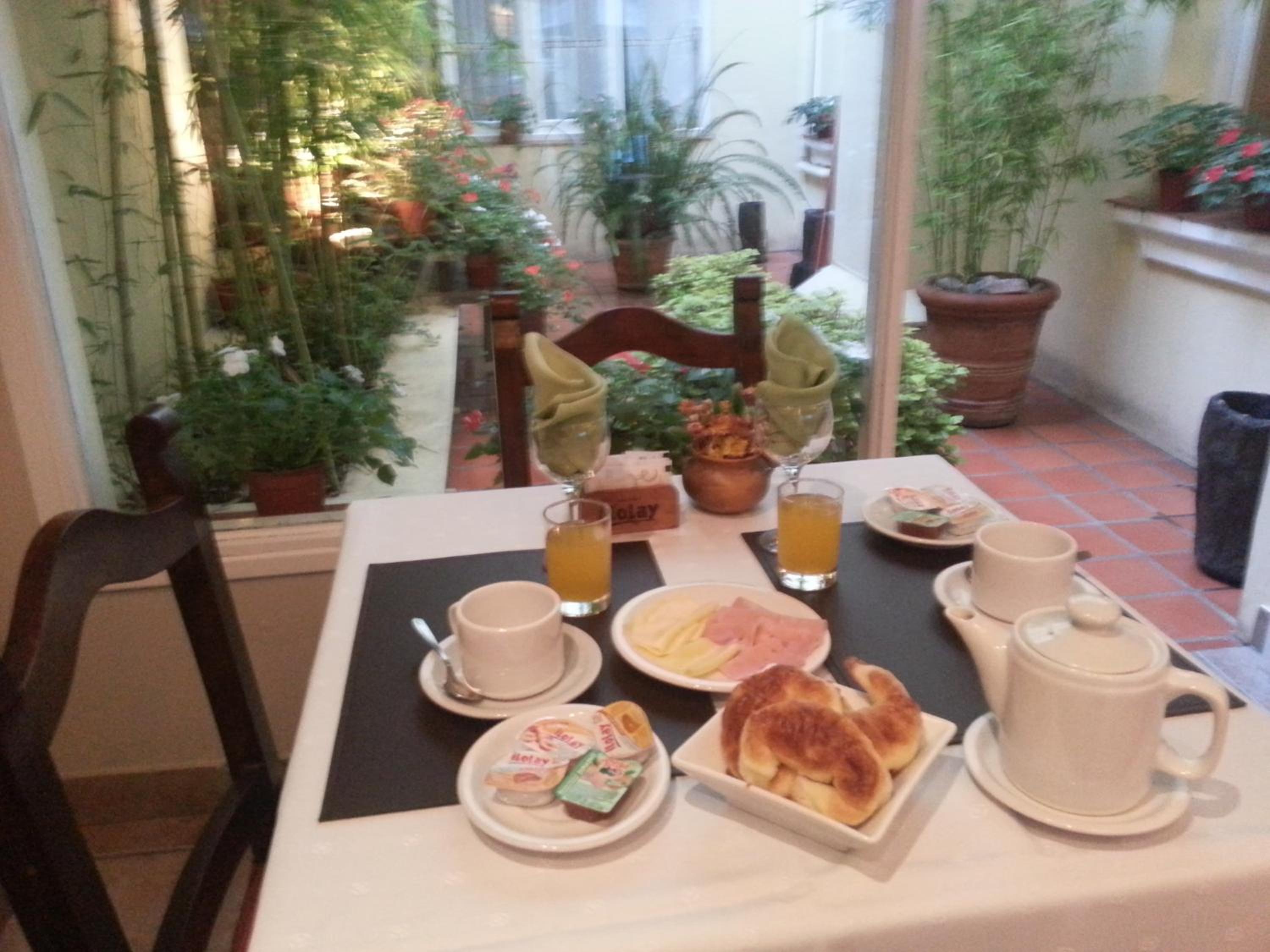 Breakfast includes: a buffet breakfast with a variety of teas, coffees, and milk; several options of baked goods sweet and salty (white bread, whole wheat bread with seeds, homemade rolls and tortillas, and various flavors of puddings). Fresh fruit; yogurt; scrambled eggs; individual servings of butter, jam, and caramel sauce (dulce de leche). Gluten-free options are available.