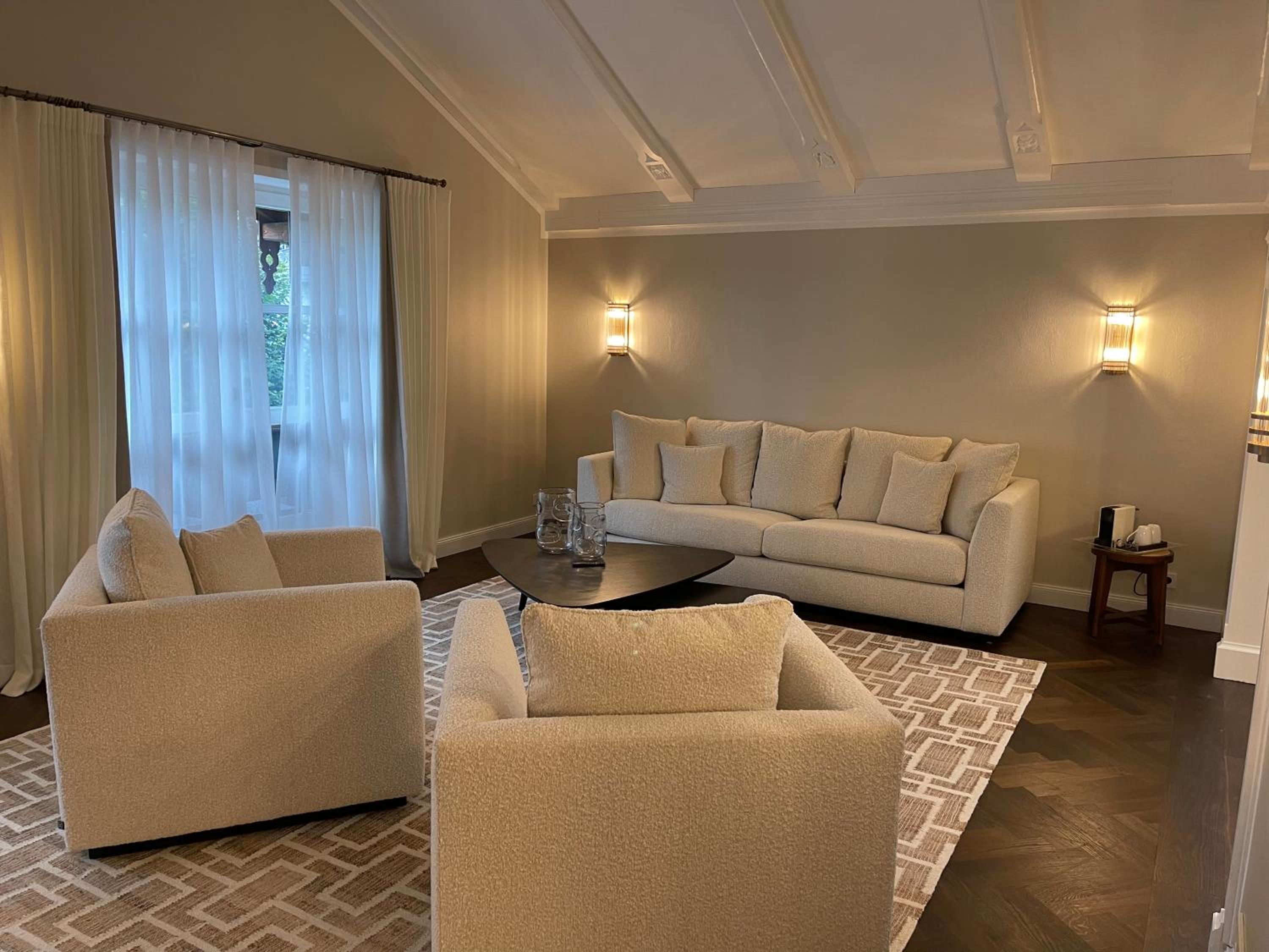 Das Zimmer war wirklich sehr hübsch eingerichtet und die Terrasse mit Liegestuhl ist im Sommer sicher ein Traum. (Mit Bächlein, das vorbeifließt.) Die Betten waren nur mittelmäßig bequem (waren uns zu weich). Das Frühstück in Bio Qualität war spitze, vor allem der Obstsalat, der bereits am Tisch stand und die sehr umfangreiche Auswahl an frischen Tees. Auch die selbstgemachten Brotaufstriche haben uns gut geschmeckt. Das Personal war sehr aufmerksam und freundlich. Wir kommen auf jeden Fall im Sommer wieder.