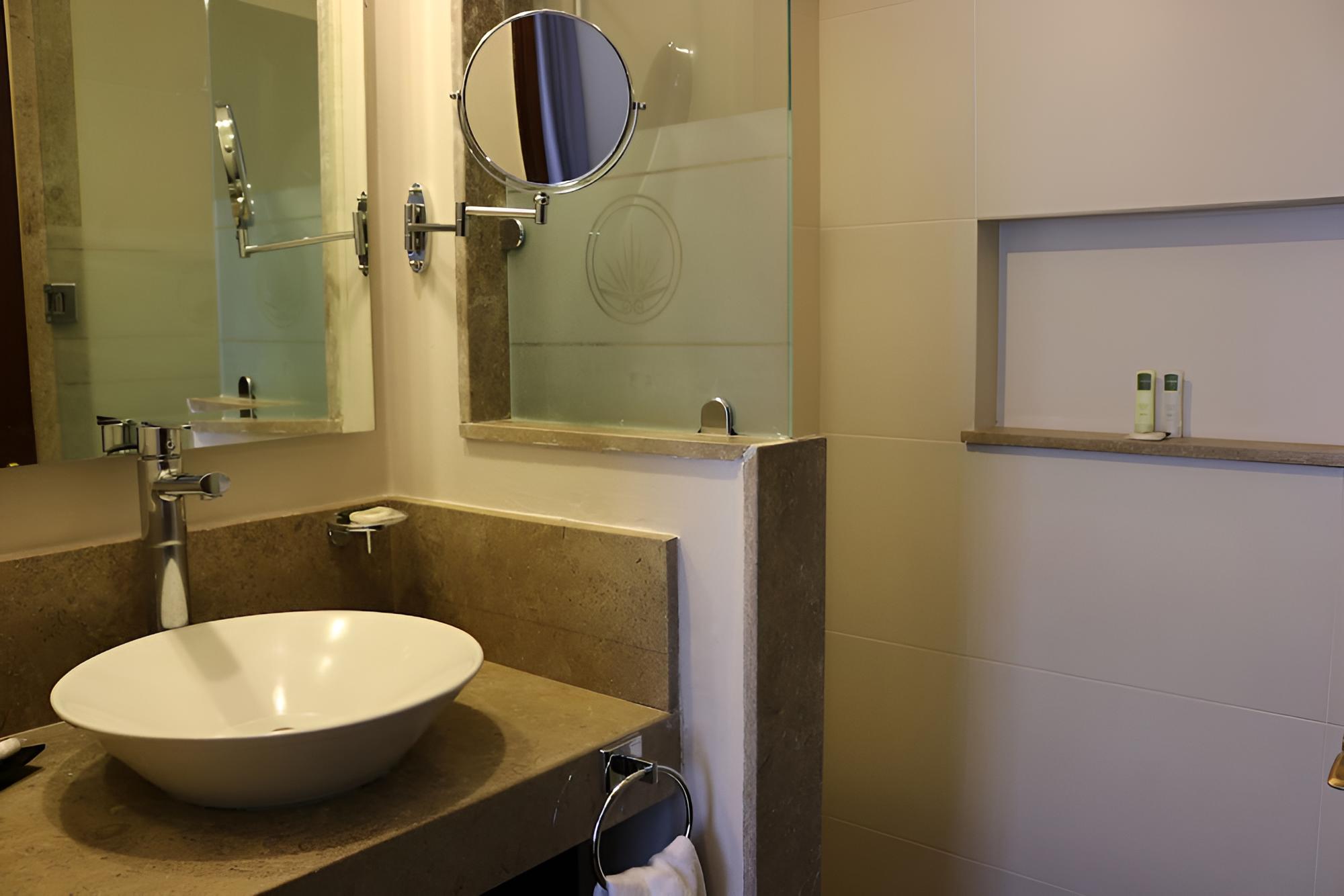 Unwind in our air-conditioned rooms with premium bedding, LCD TVs, and rainfall showers. Stay connected with complimentary Wi-Fi and enjoy cable programming for entertainment.