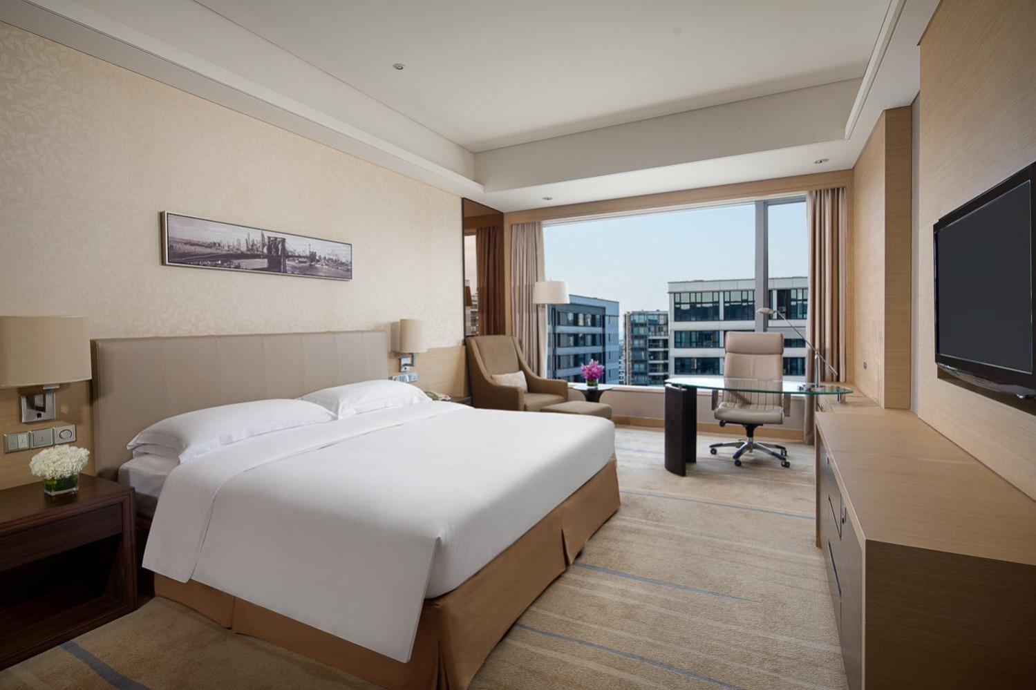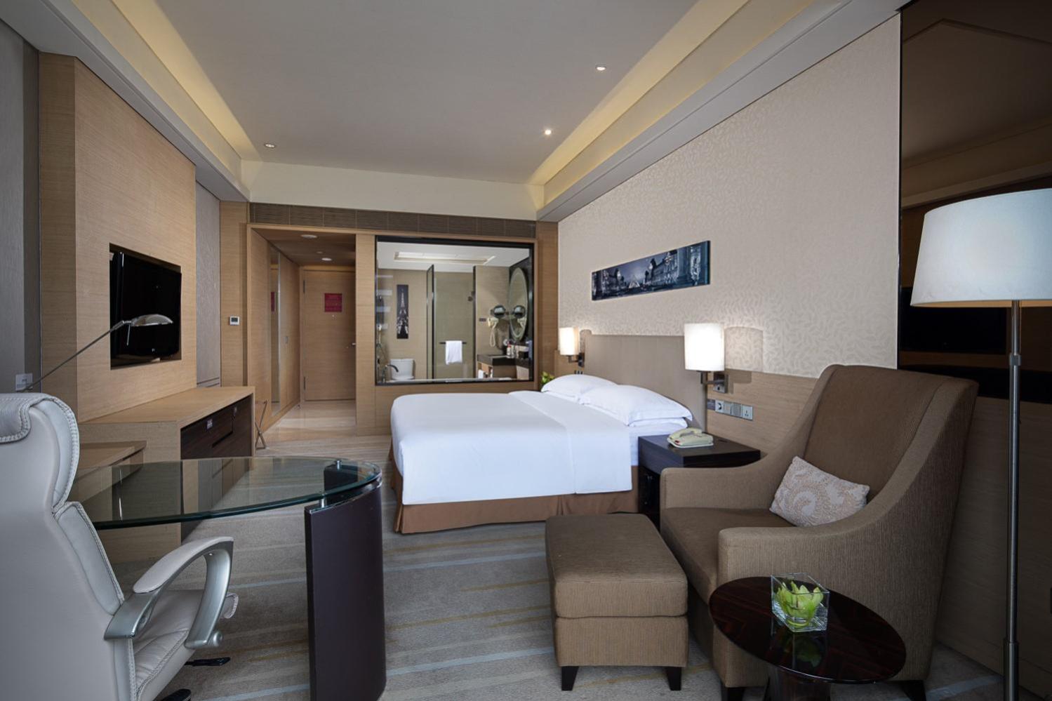 Indulge in the spacious and luxuriously decorated rooms at Huadu Crowne Plaza, complete with top-notch amenities such as LCD TV, minibar, and rain shower.