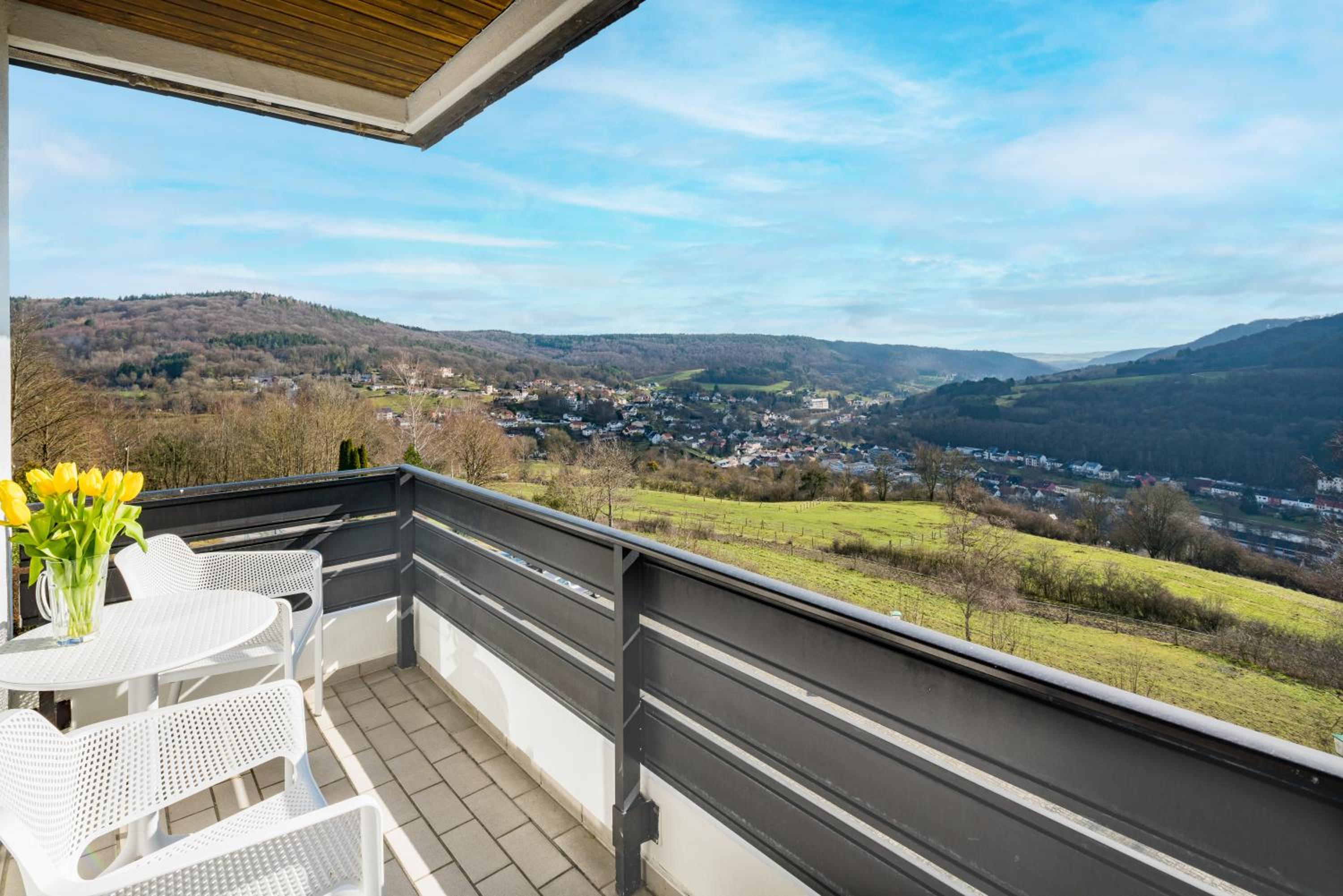 Die wunderschöne Aussicht über das Tal vom Hotel.