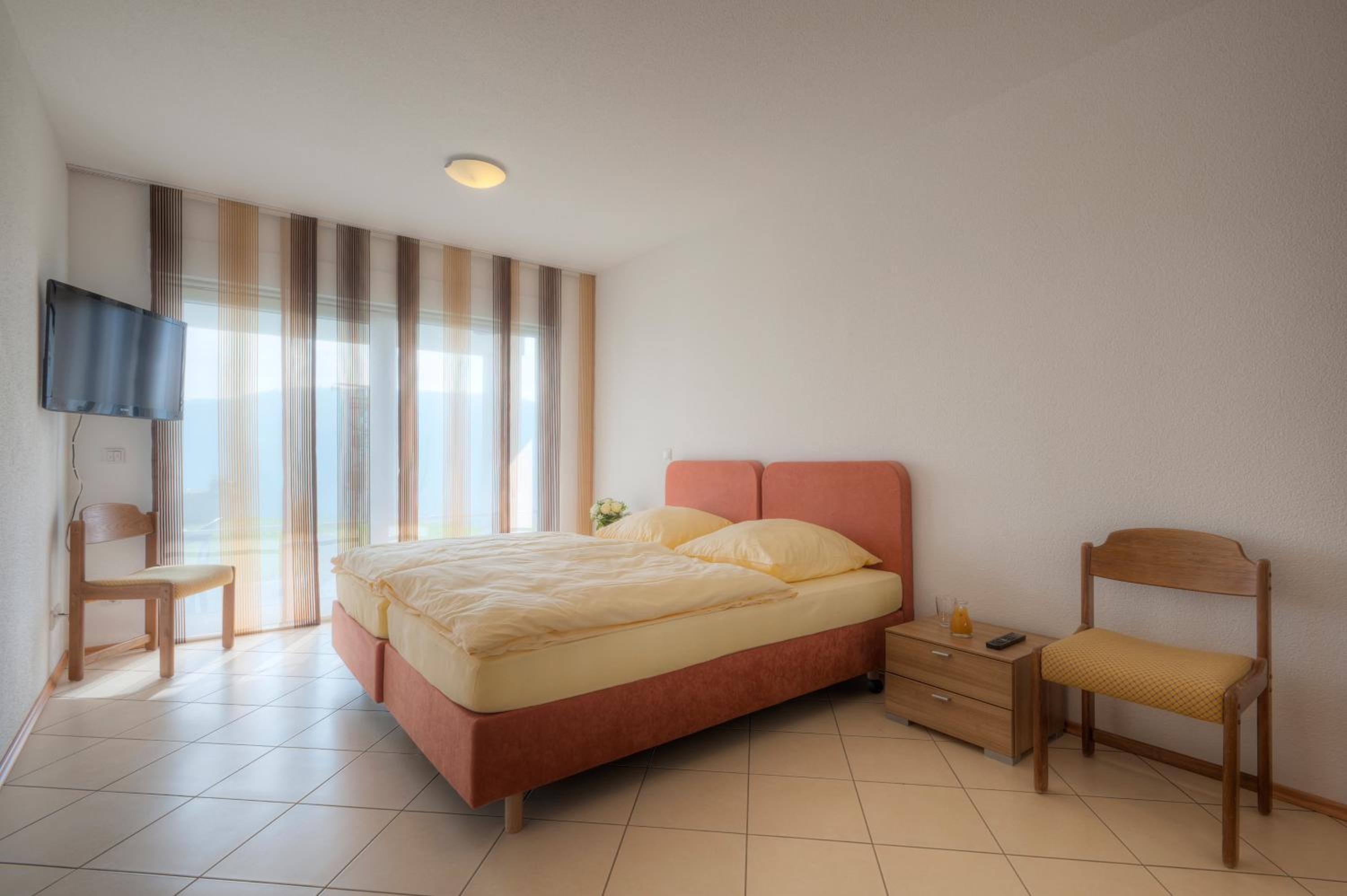 Chambre confortable, très bonne literie. Les équipements (piscine, sauna) très agréables . Petit déjeuner très bien. Très belle vue sur la vallée.