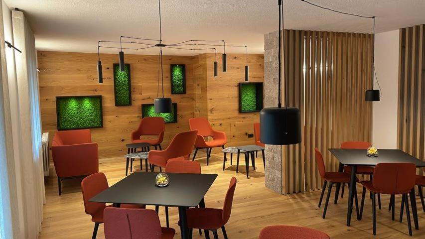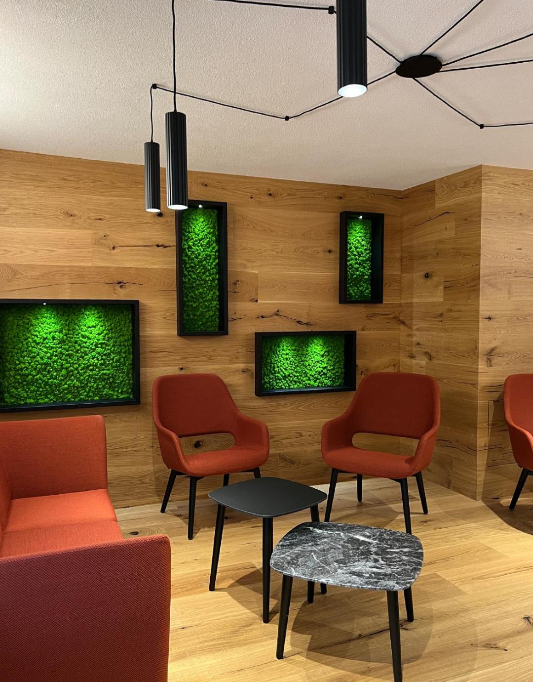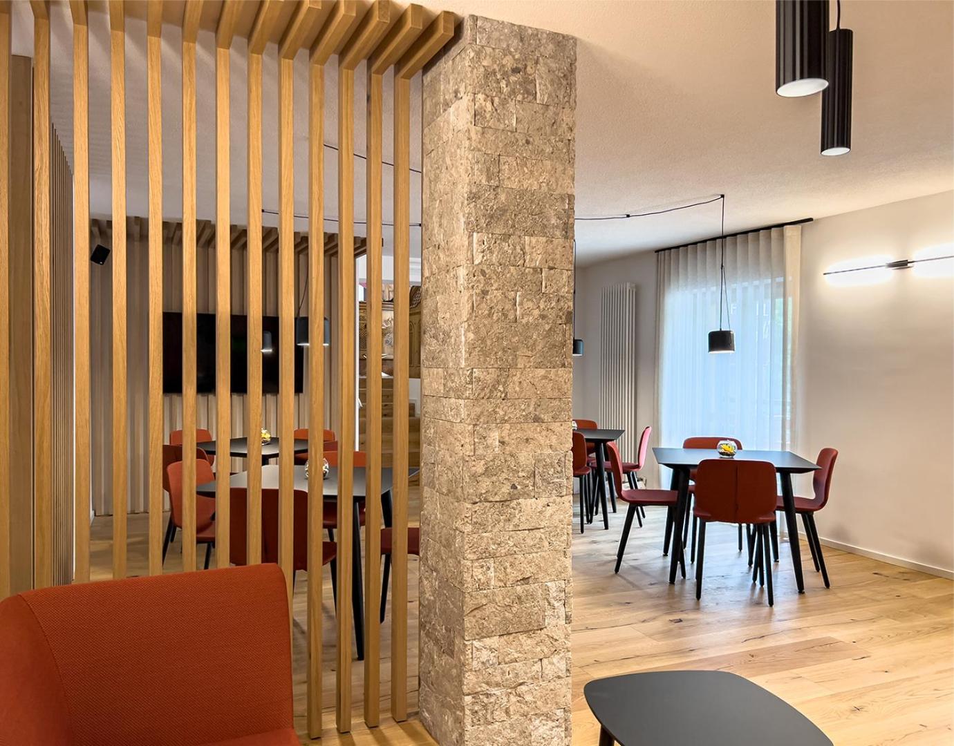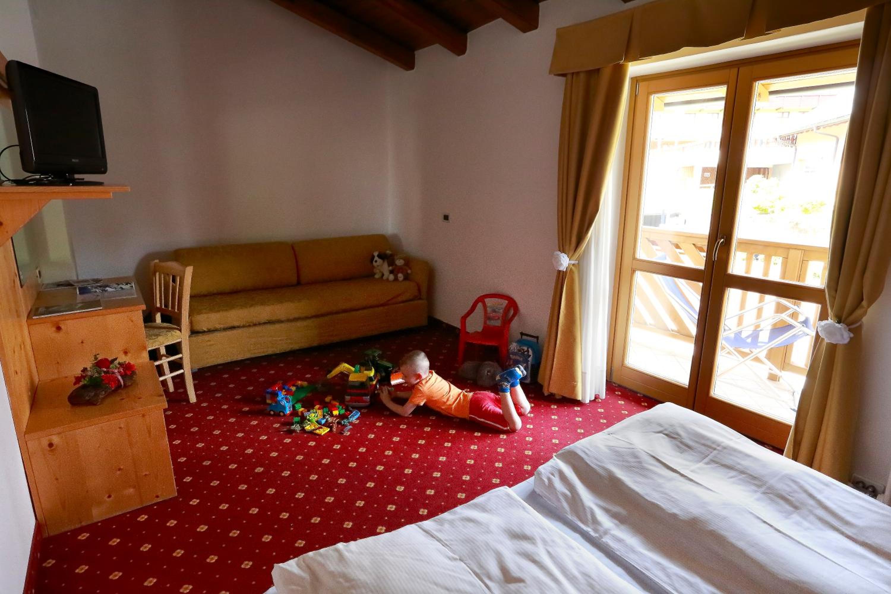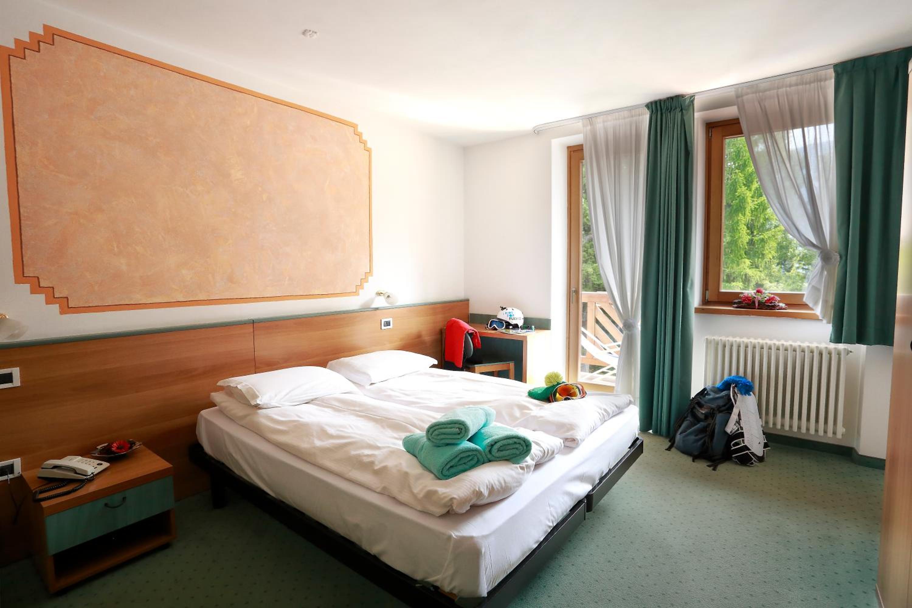 Experience cozy rooms with plush carpeted floors, LCD TVs, and private bathrooms. Wake up to stunning Dolomite views in select rooms. Enjoy drinks in our charming bar with wooden accents.