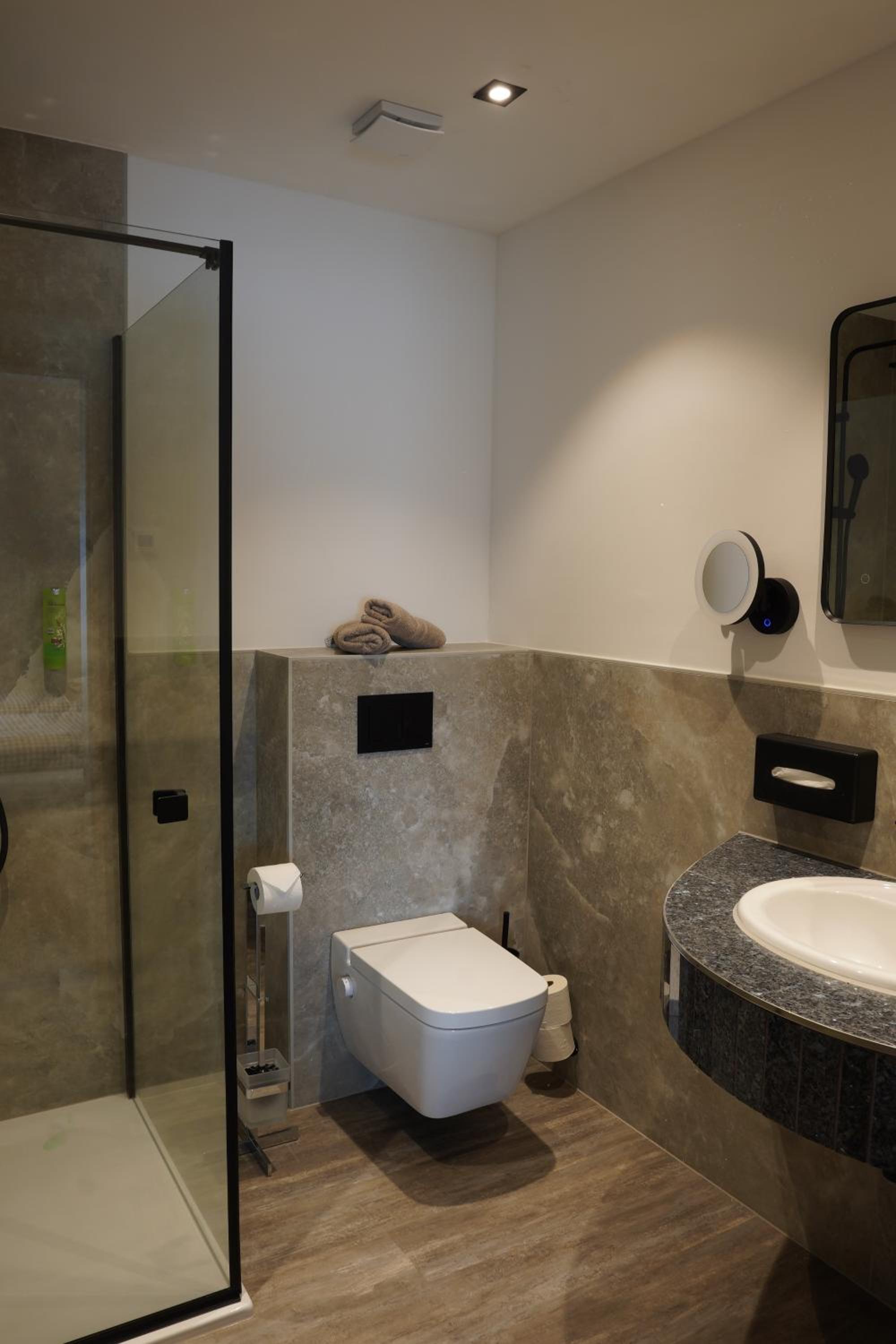 Each room features a minibar and a modern bathroom with cosmetic mirror.