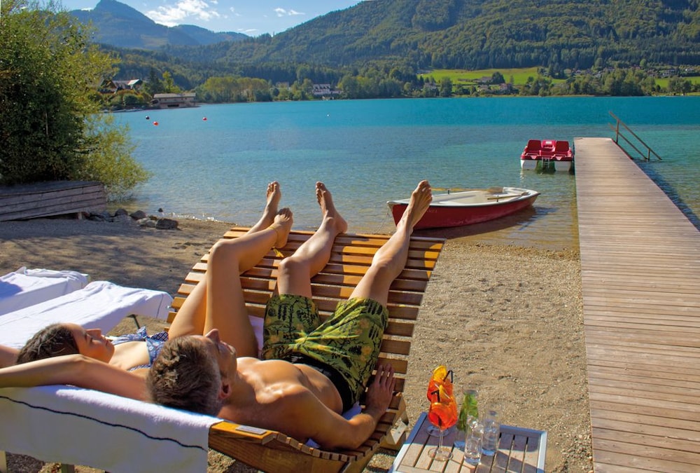 To experience ultimate relaxation and luxury by the lake, book your stay at Seewinkel in Fuschl am See.
