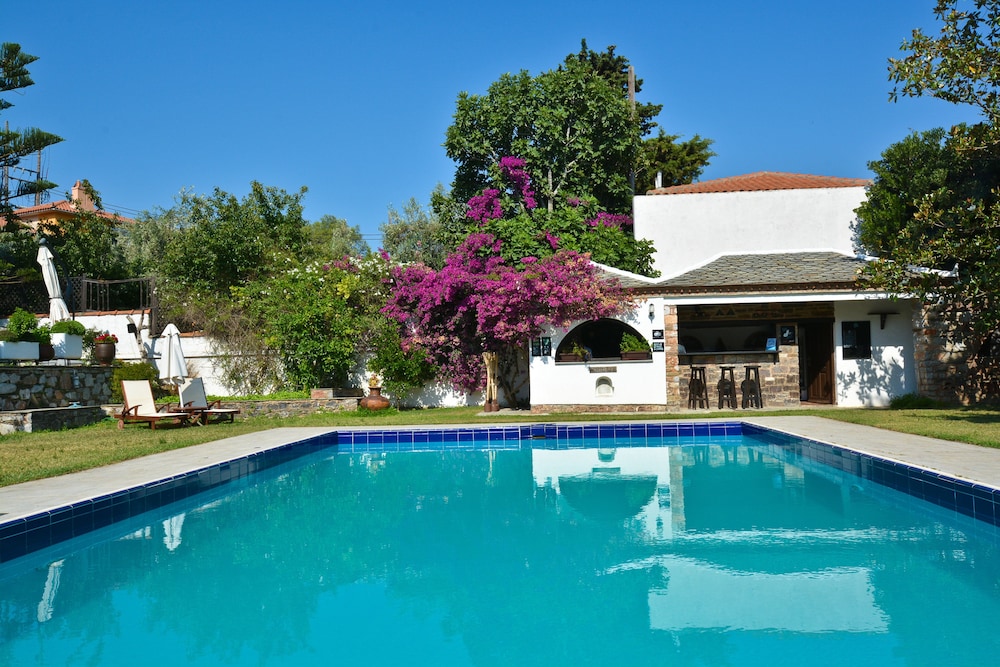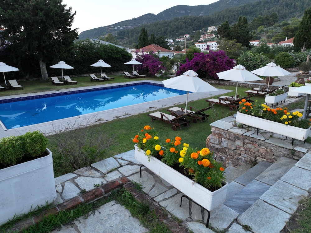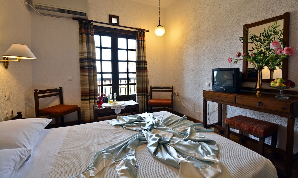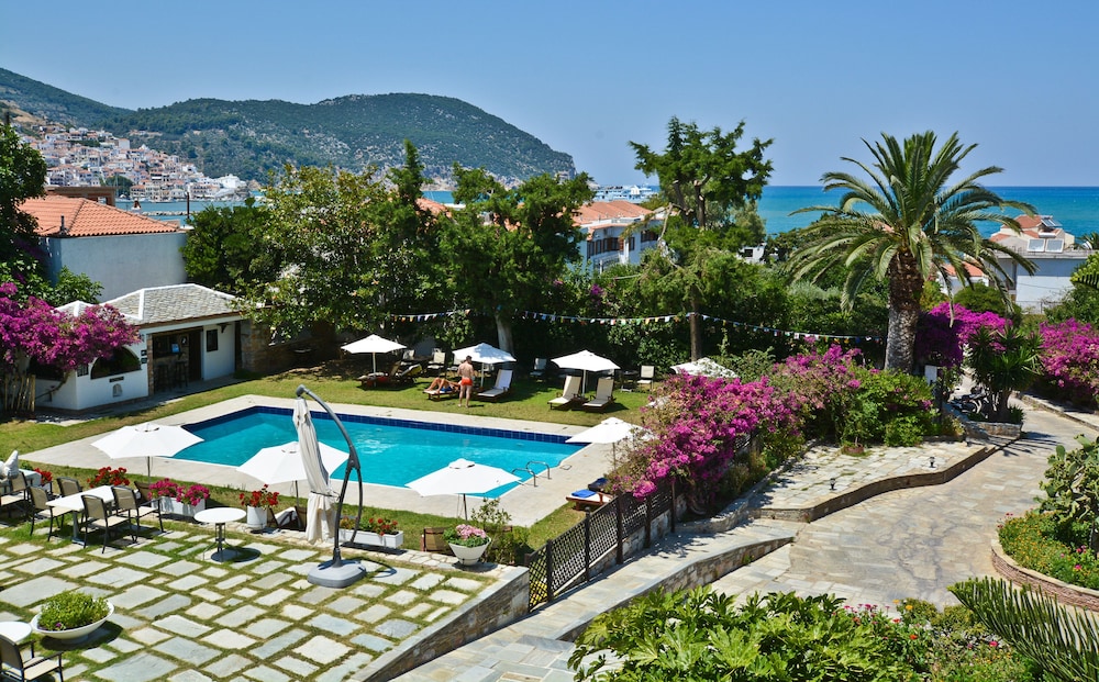 Ikke et 4 stjernes hotell. Var heldigvis godt forberedt da jeg hadde lest anmeldelsene før jeg ankom, og derfor var forventningene lagt til Max 2 stjernes. Veldig gammelt og utdatert hotell. Det som trekker opp er servicen til de ansatte, der de veiledet og svarte på forespørsler om Skopelos. Ett pluss med basseng og fin hage, men da forholdene inne på hotellet ikke innbød til å oppholde seg det ble hotell området lite brukt.