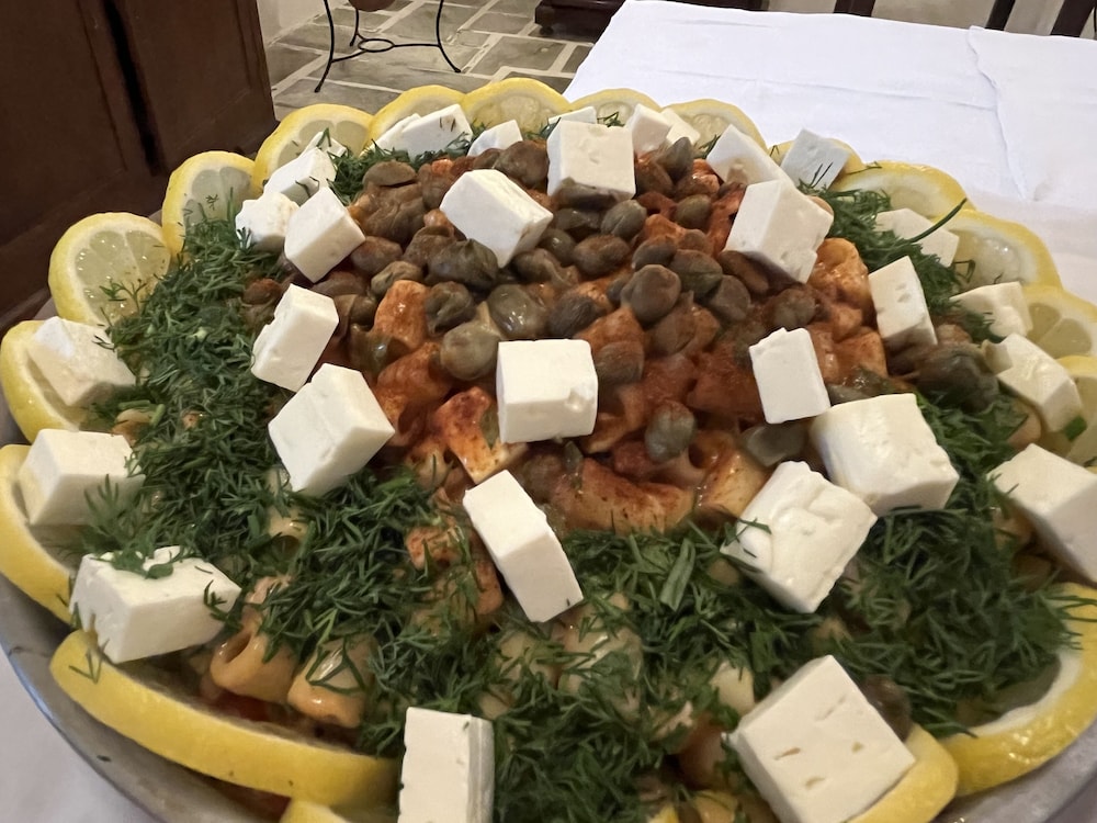 We were lucky to be there for Greek night, when musicians come for dinner and the old patriarch of the family sings and dances. The festivities lasted late into the night. A true Greek experience. The food was authentic Greek and delicious. There is poolside service for snacks and drinks.