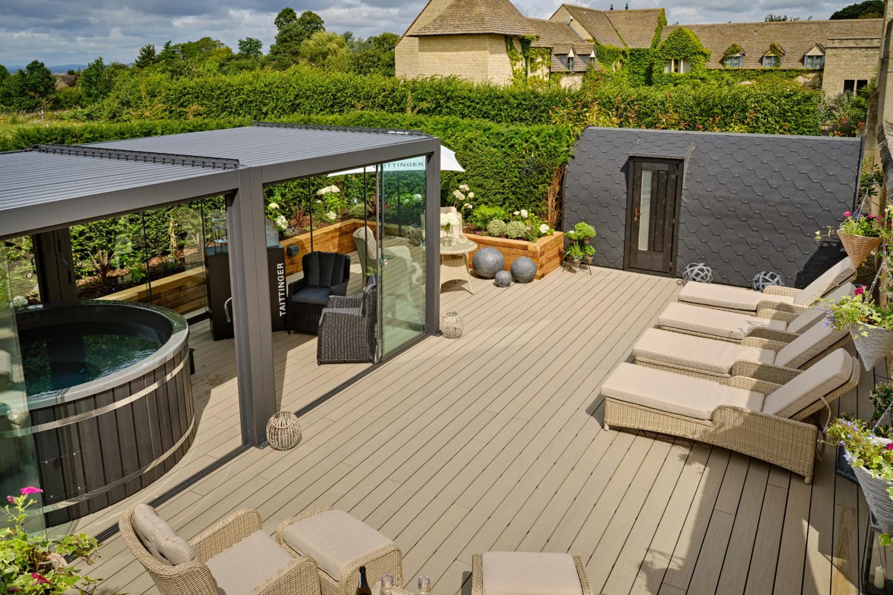Unwind in our Spa Garden Retreat with a hot tub, sauna, and outdoor lounging area, or enjoy the serene spa facilities including a heated pool, Jacuzzi, and private track to Cheltenham Racecourse.