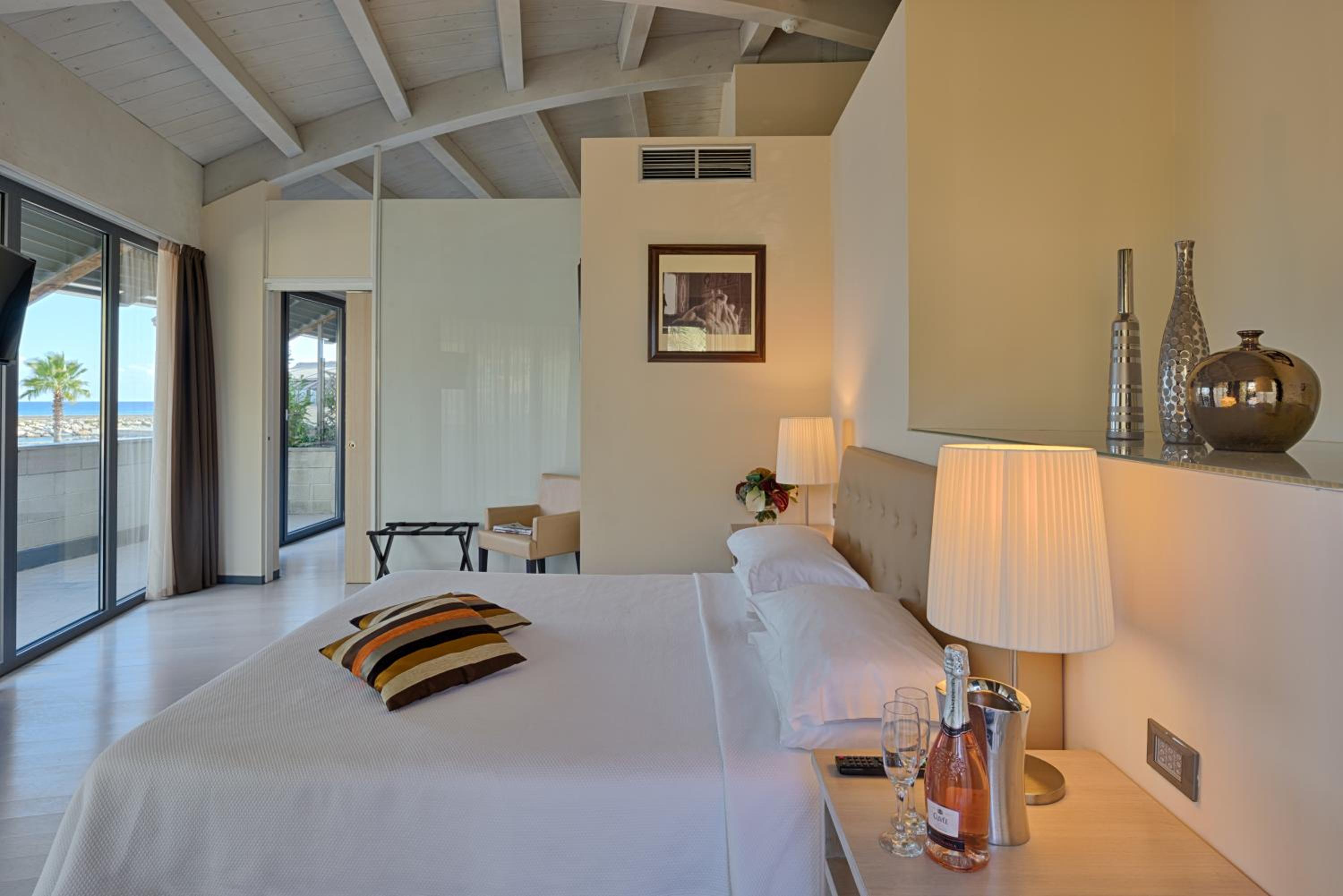 Il servizio spiaggia manca totalmente, in quanto non esiste un servizio bar esterno, privo di pulsante di chiamata servizio, visto che nessun personale passa a chiedere , ci si deve ogni volta vestire per recarsi al bar interno e attendere il personale, direi molto scomodo.