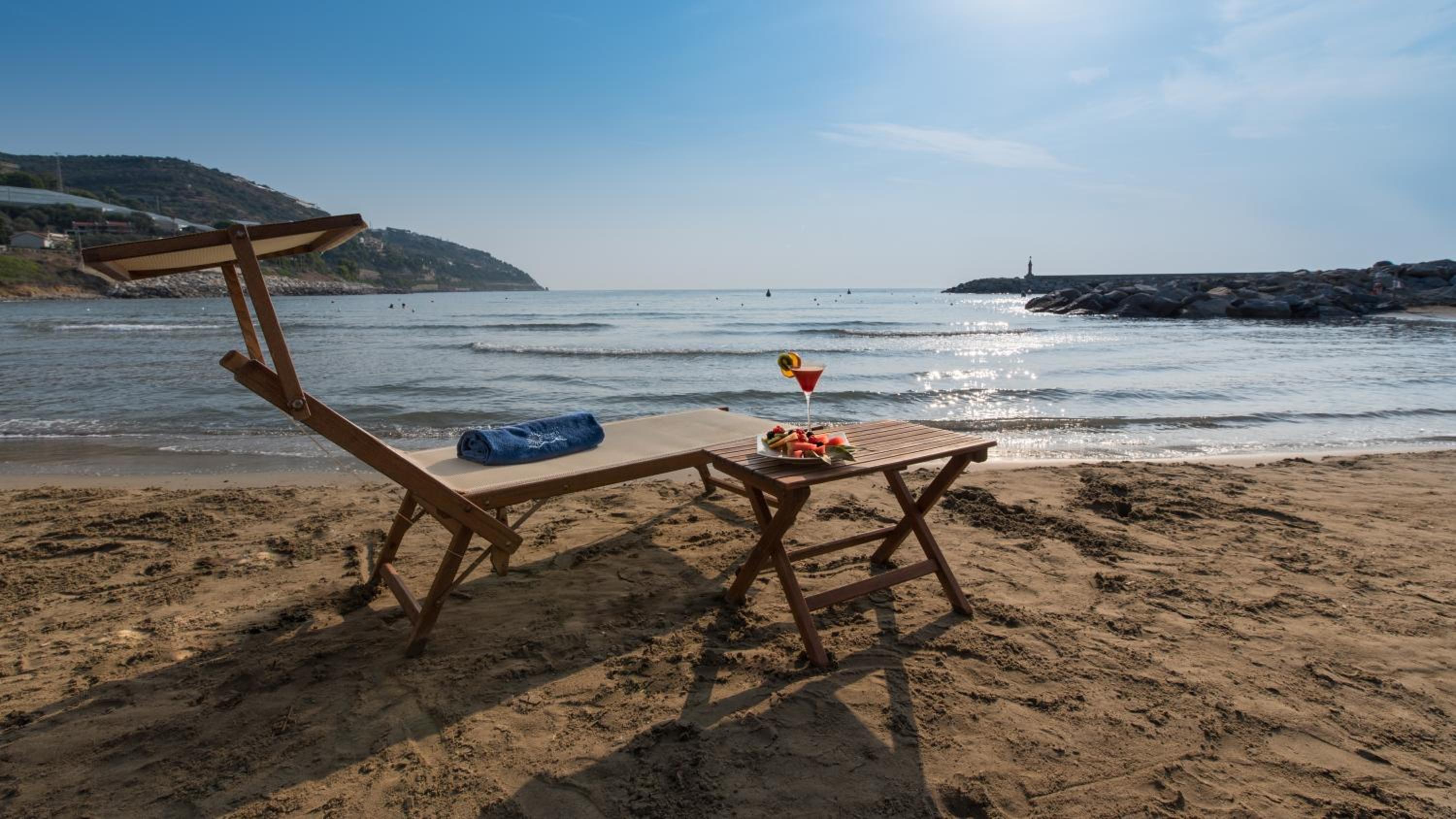 Lokalizacja z daleka od jakiegokolwiek hałasu i centrum turystycznego. Prywatna plaża z darmowymi leżakami i parasolami, ręczniki plażowe do dyspozycji gości, piękne i bardzo przestronne pokoje, parking obok hotelu pod dachem w osobnym budynku, to ważne, bo samochód stoi w chłodzie. Znakomita lokalizacja w pobliżu San Remo, blisko do autostrady, ale zero hałasu. Piękny widok z pokoi na 1 piętrze na port jachtowy i morze lub na morze i plażę