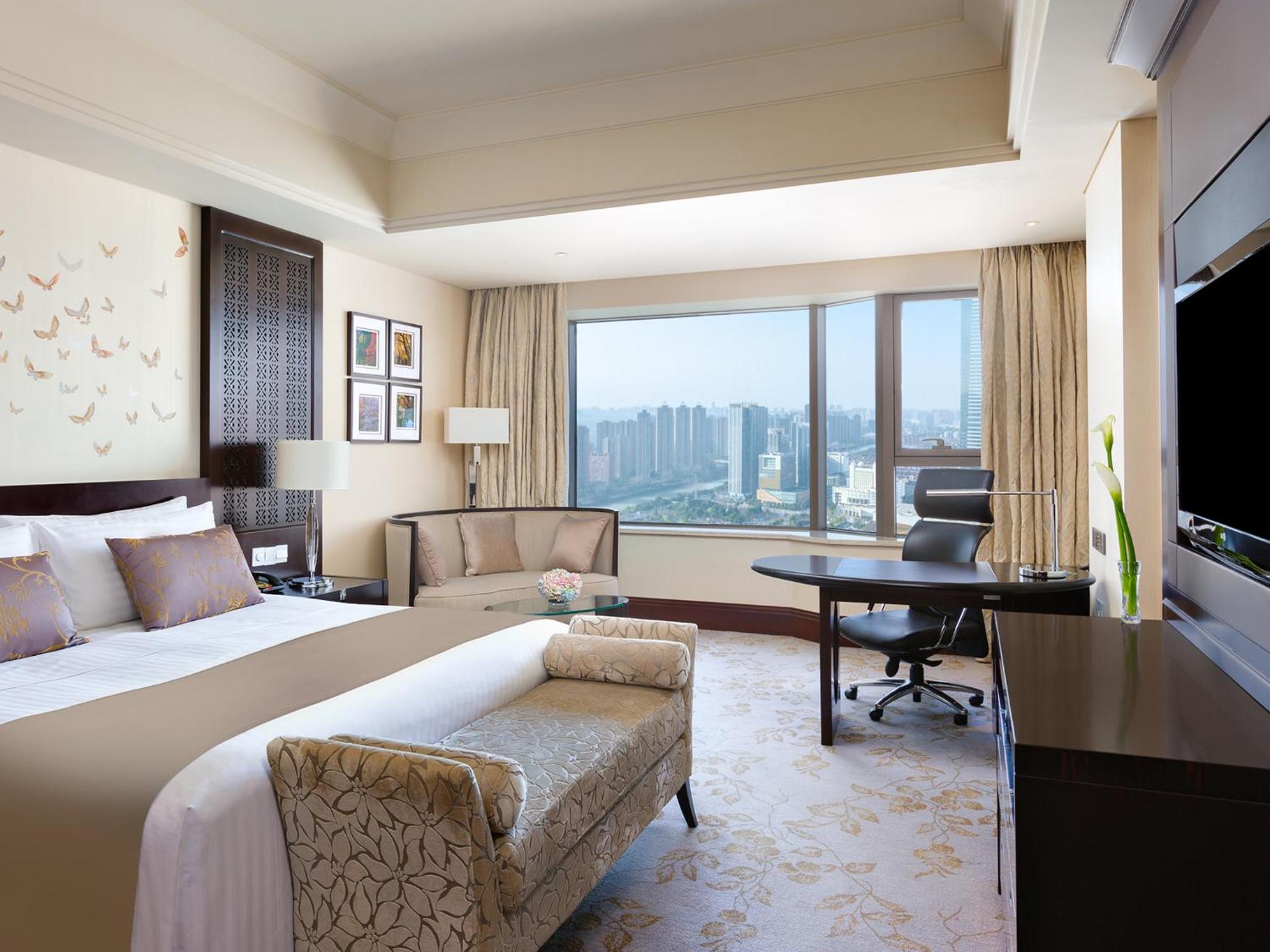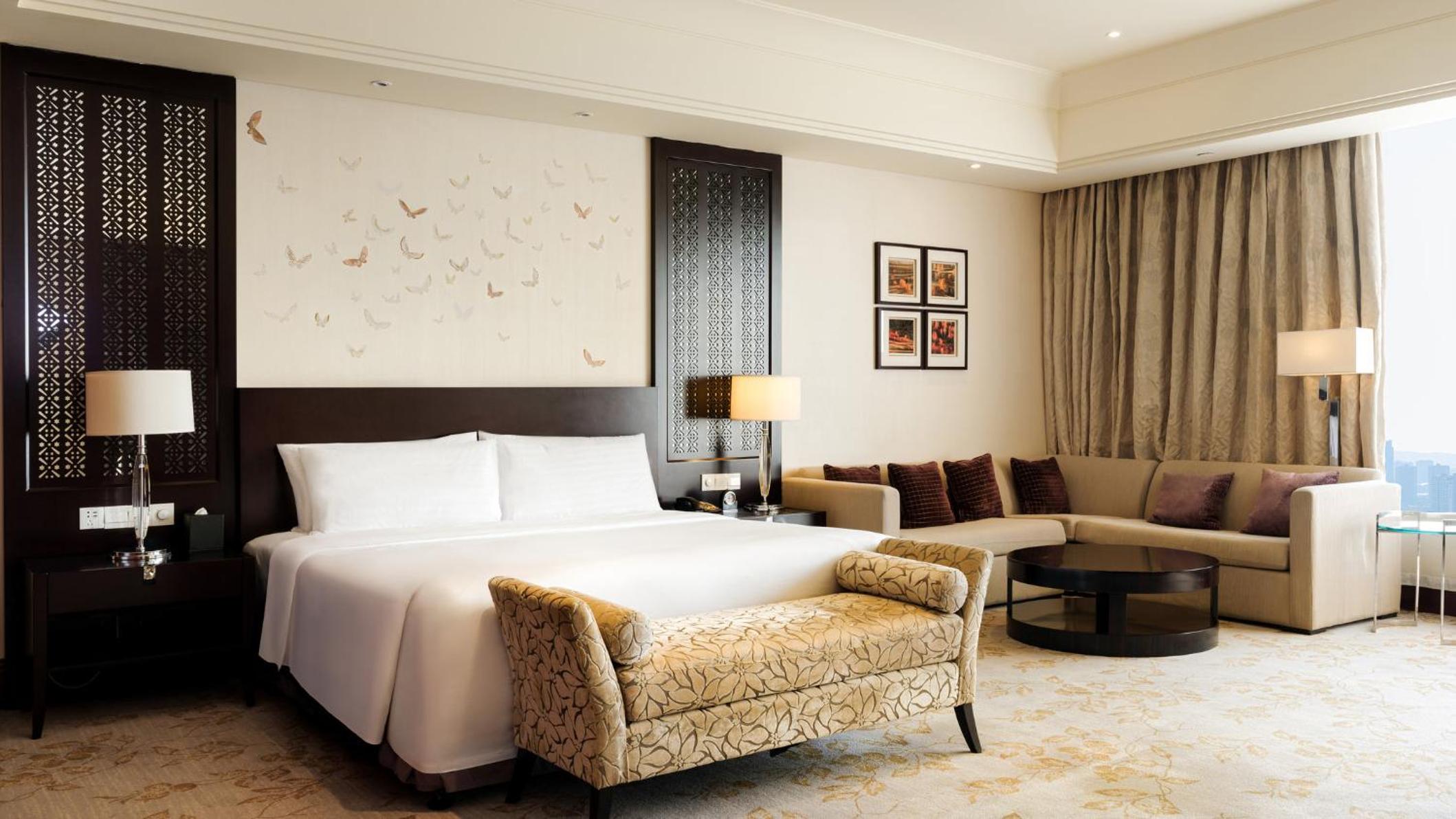 The InterContinental Wuxi offers a luxurious stay with breathtaking views of Taihu Square and Jinghang Grand Canal from each guestroom. Enjoy modern amenities like a 42-inch LCD TV, iPod docking station, and a plush seating area for ultimate comfort.