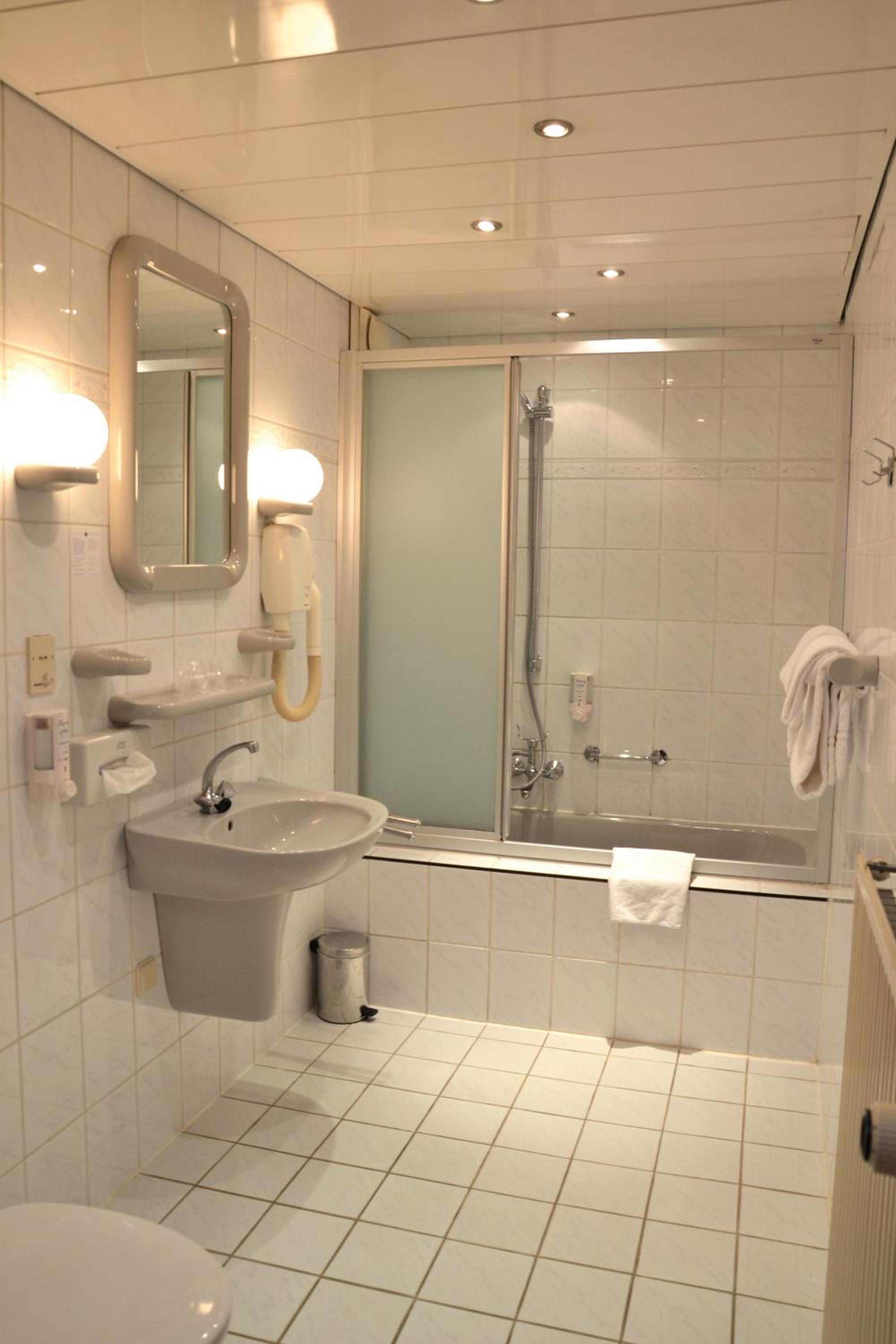 Is allemaal wat gedateerd en de verwarming werkte niet goed op de kamer. Het was heel fris en we konden een extra deken krijgen. Tja...
