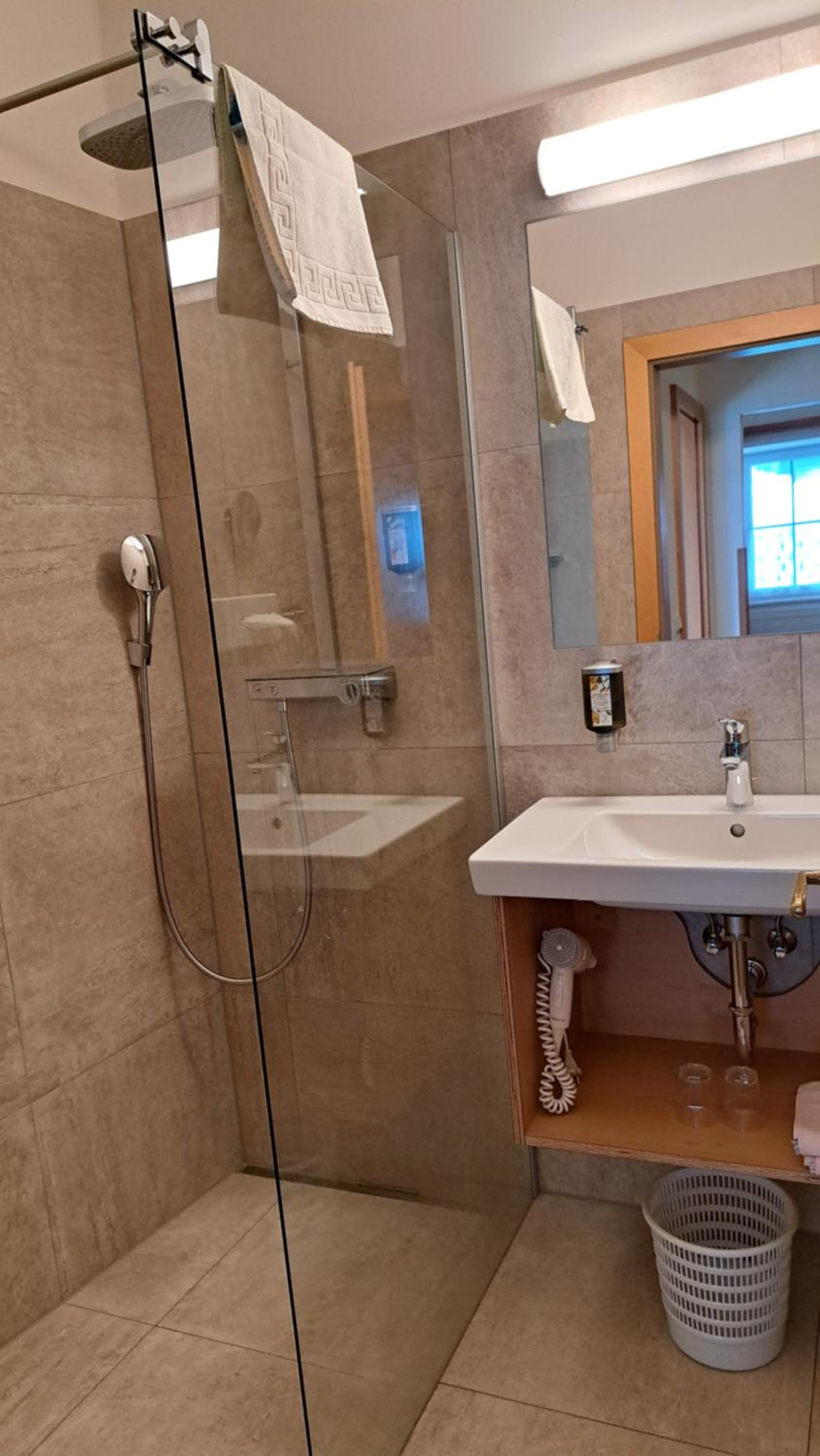 Die Wirtsleute sind sehr herzliche Menschen mit Humor. Das Einzelzimmer war sehr durchdacht mit toller Dusche und Bett. Zimmer ist bezüglich der Bedürfnisse sehr durchdacht, und wirkt grösser. Das Abendessen war aussergewöhnlich gut - beste Suppe mit Kaspressknödel, die ich jemals gegessen habe. Auch das Schulterscherzl mit Semmelkren war purer Genuss. Frühstück war für wenige Gäste bodenständig aber gut und ausreichend.