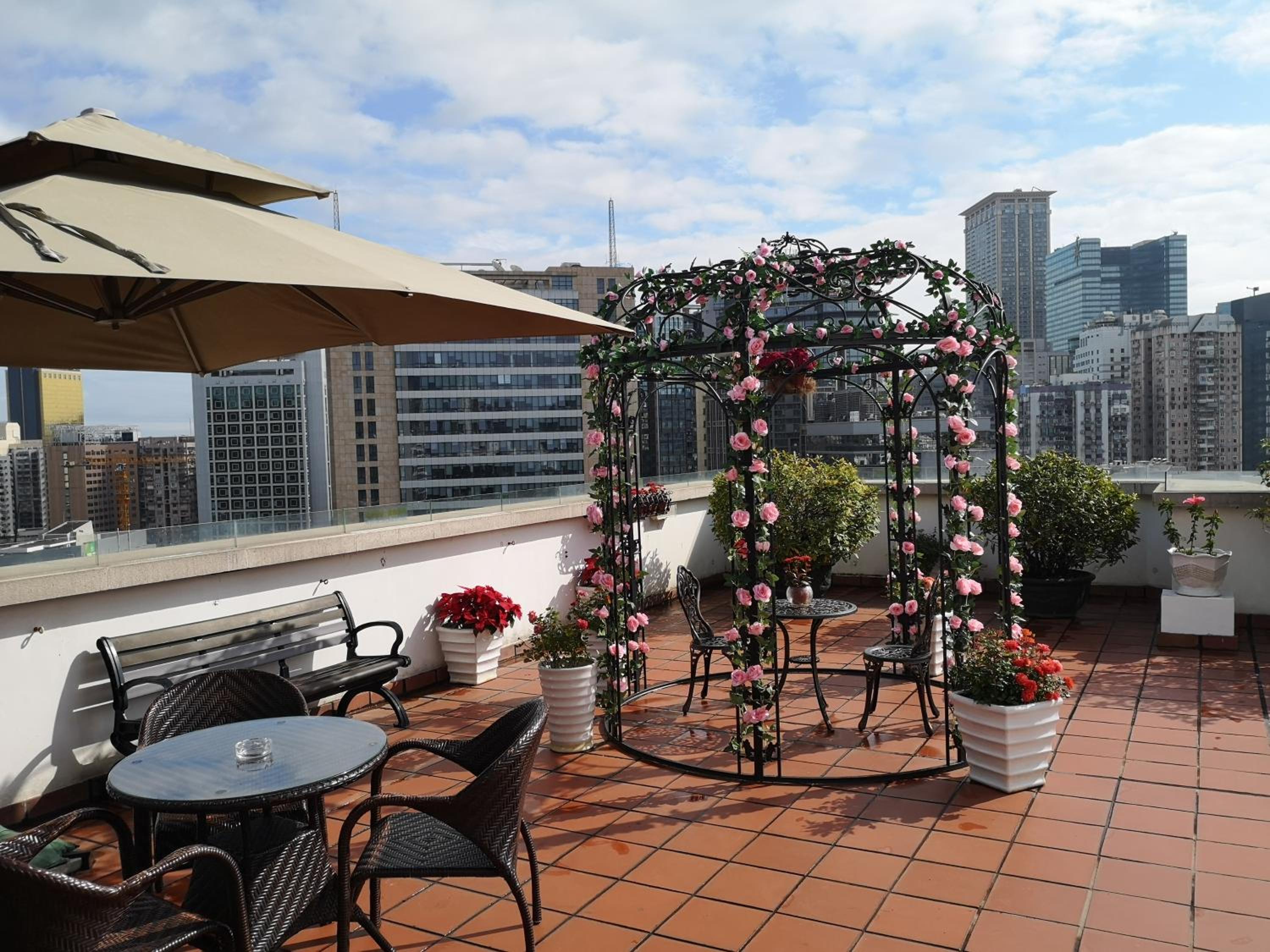 Taras z widokiem na panoramę miasta. Sympatyczny personel. Hotel usytuowany jest w pobliżu wzgórza Guia Fortress and Lighthouse.
