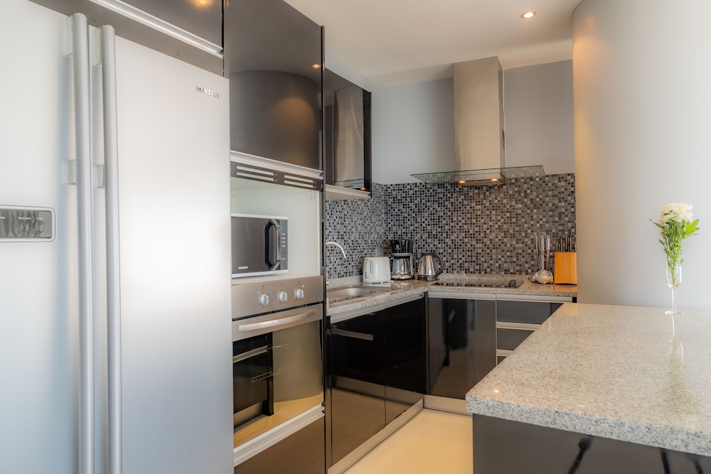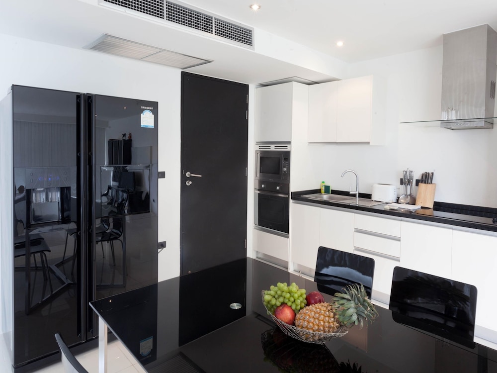 We arrived morning before Office opened but our key was at the Office entrance with our name & apartment number on. A lady was there to assist us with our luggage & took us to our apartment. We already had great 1st impression of the stunning refreshing clean pool area (which we spend a lot of swims & night swims in-which is beautifully lit up at night). The apartment was clean & cool (from aircon-since ridiculously hot & humid outside). The bedrooms had fresh crisp linen (a huge plus for me since very fussy person). The kitchen & lounge was clean & tidy. Good kitchen facilities (a washing machine & dish washer would have been a bonus). Once a week the apartment is completely cleaned & fresh bath & swim towels are given. The vacuum cleaner included was a great for a quick clean of the beach sand & kids crumbs etc. We had a beautiful view of the Andaman Sea (Apartment A25) & a Jacuzzi on the Balcony with romantic Lights that change colour. Overall we were very happy with our stay & were comfortable. however from all the reviews from before we booked the apartment the Hill is no joke, but thank goodness we are very Fit & enjoyed the work out & then looked forward to jumping into the refreshing pool straight after. Even our 8 half year old son managed the hill (we had to carry our 4 year old son though on top of all the beach bags or 9ltr bottles of water at a time). the family mart just at the bottom of the hill across the road sold 6 x 1.5Ltr Bottle Water for only THB60.