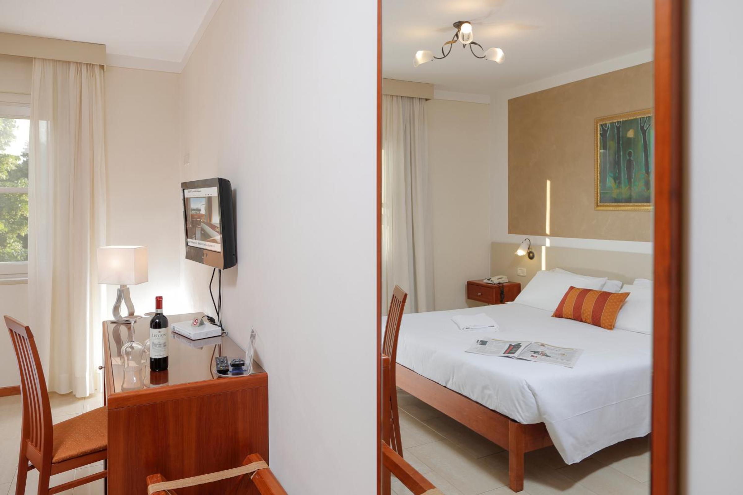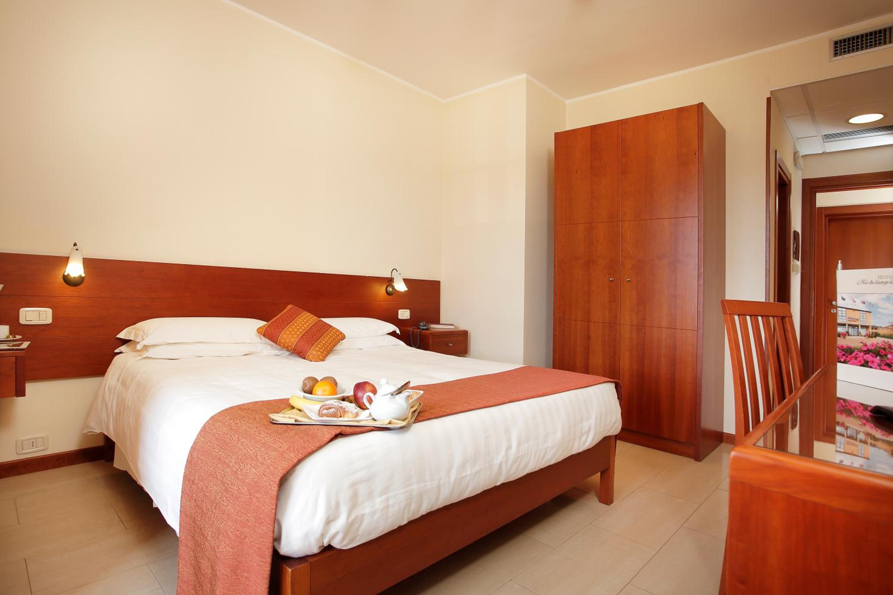 Comfortable and Stylish Rooms The air-conditioned and soundproofed rooms at the Michelangelo are decorated in a simple style with natural wood furniture. Each room features a private bathroom and Wi-Fi access for your convenience.