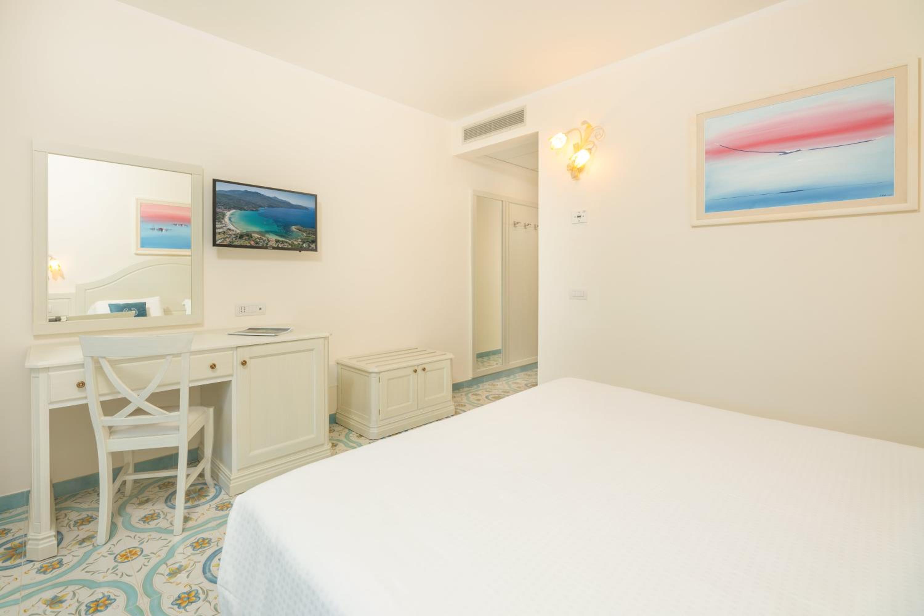 Wenn ich für ein Doppelzimmer mit Frühstück Fr. 300.--/ pro Nacht bezahle erwarte ich nicht eine Besenkammer aus den 70er Jahren. Hätten wir nicht ein upgreade erhalten für ein anderes Zimmer mit Meersicht für 5 Nächte und eine Suite für 2 Nächte welches wir mit 735.--Euro aufbezahlt haben, wären wir wider abgereist in die Toscana.