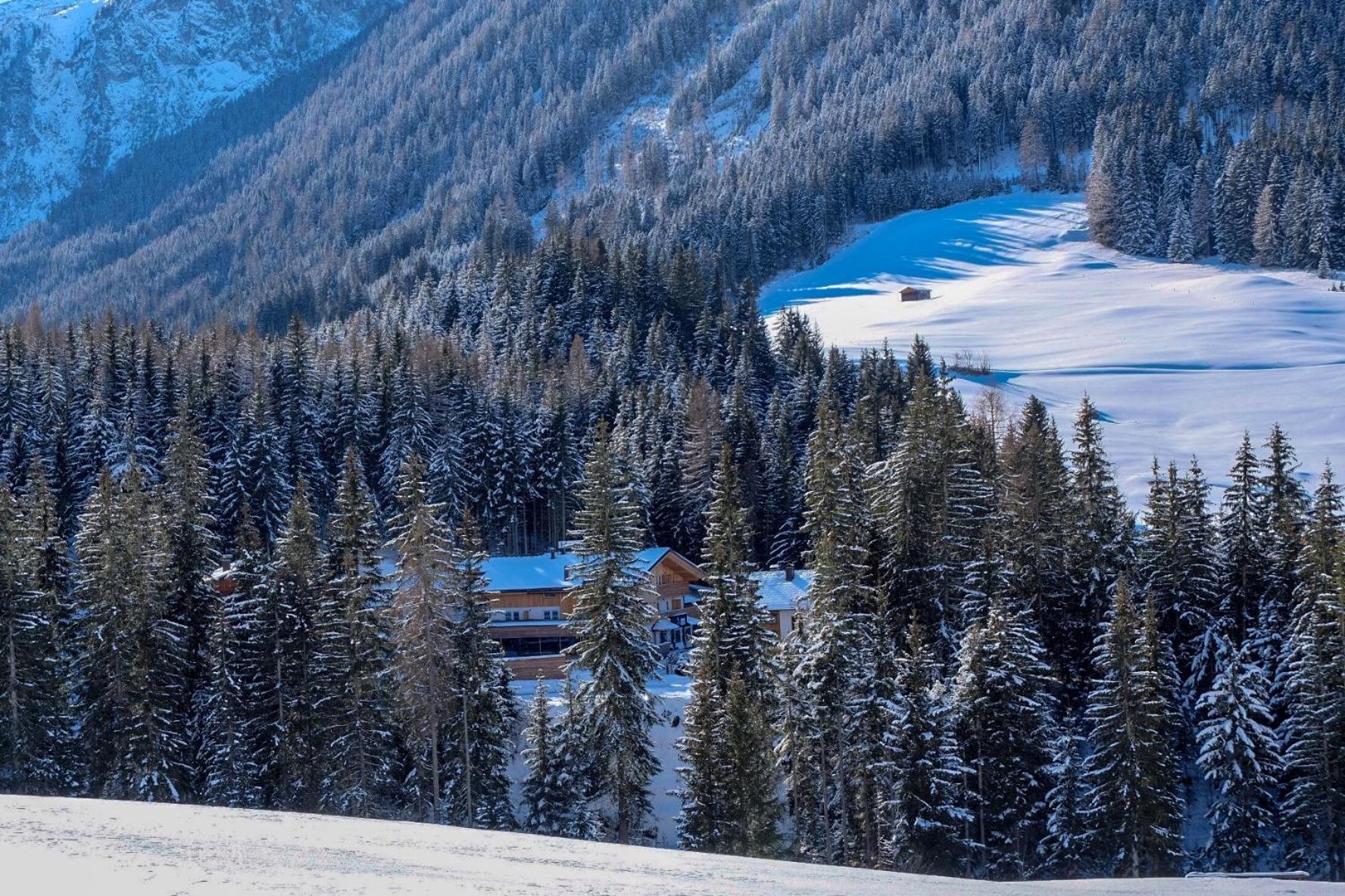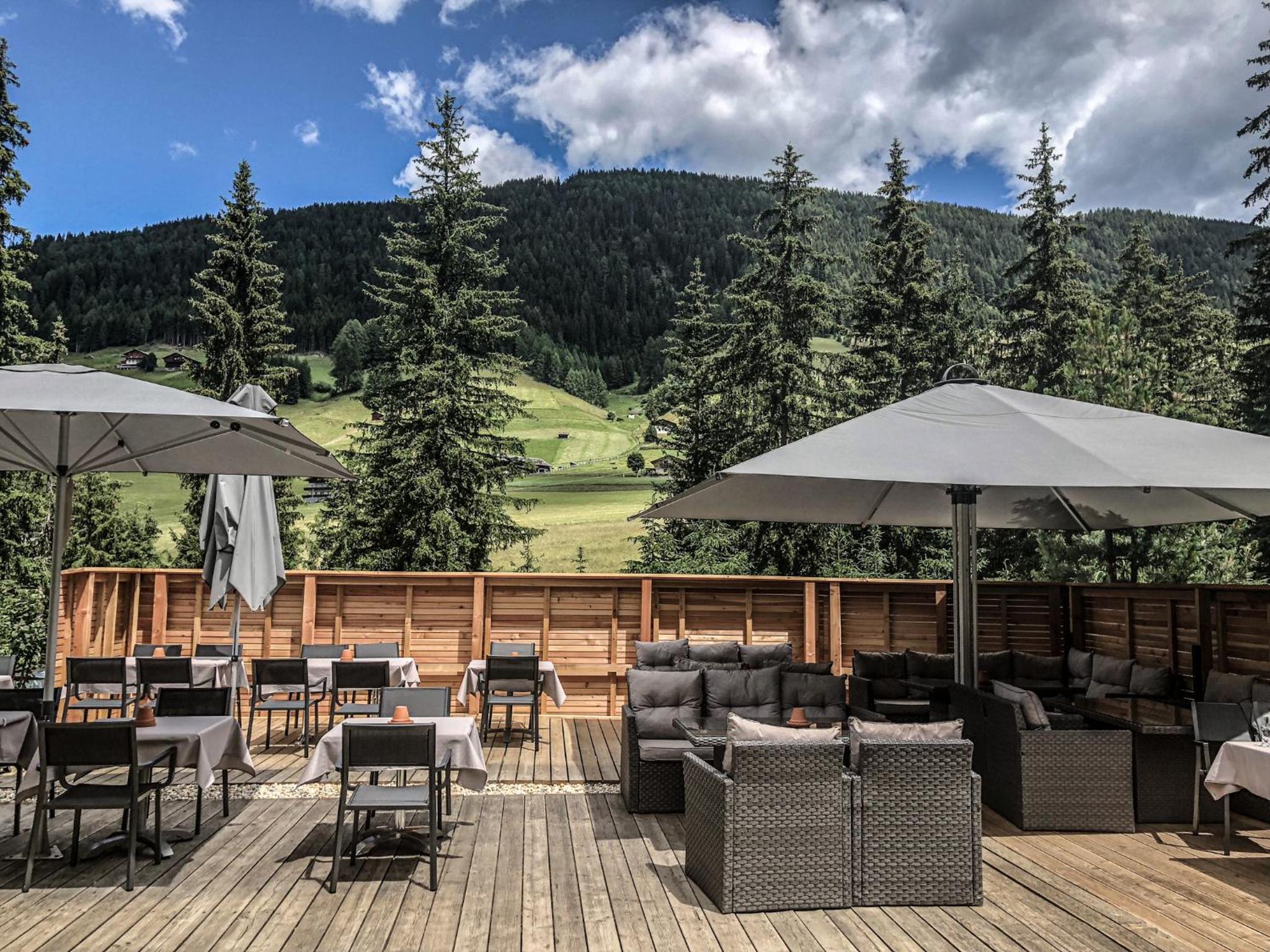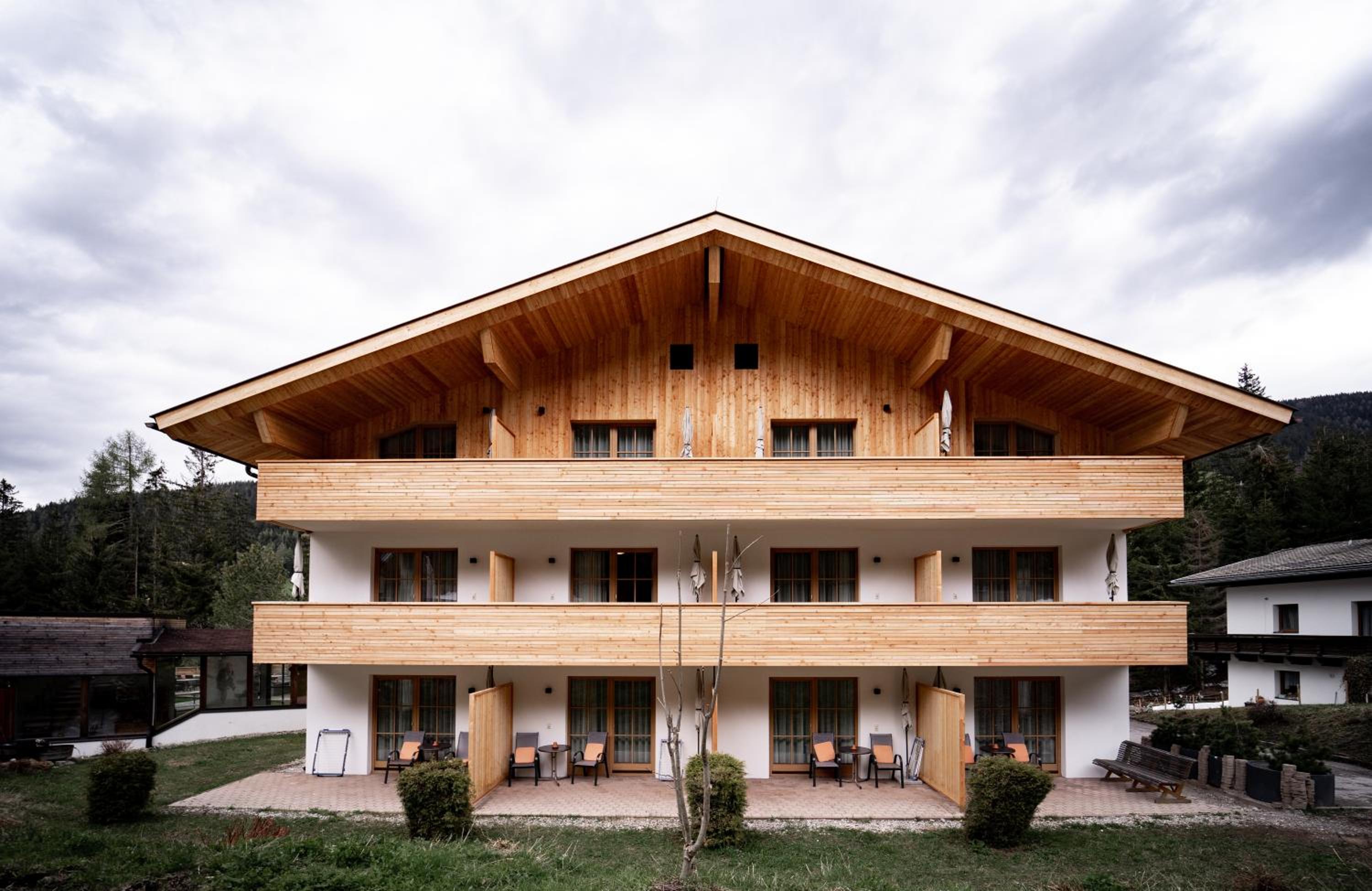 Die Waldruhe in Kartitsch offers spacious rooms with stone pine wood beds, designer furniture, and modern amenities like flat-screen TVs and free WiFi. The furnished balconies provide stunning views of the Gailtal Valley.