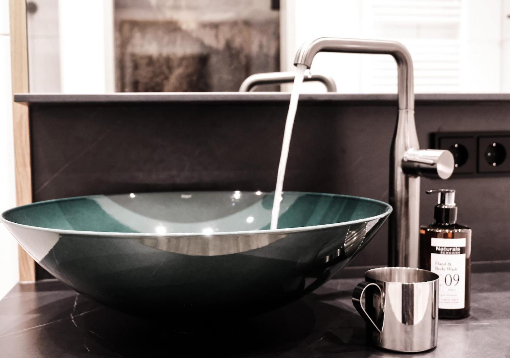 Die nicht absperrbare, bedruckte WC Glastür im Zimmer, war für mich hinsichtlich Privatsphäre schon etwas gewöhnungsbedürftig und bei der zum Badezimmerboden erhöhten Duschtasse ohne Rückwand, hat man immer das Gefühl draußen eine Lacke zu hinterlassen (ob das rausgespritzte Wasser letztlich irgendwo gezielt abrinnen würde, habe ich aber nicht ausprobiert oder nachgefragt). Vielleicht auch nur ein Problem gesehen, wo gar keines ist.