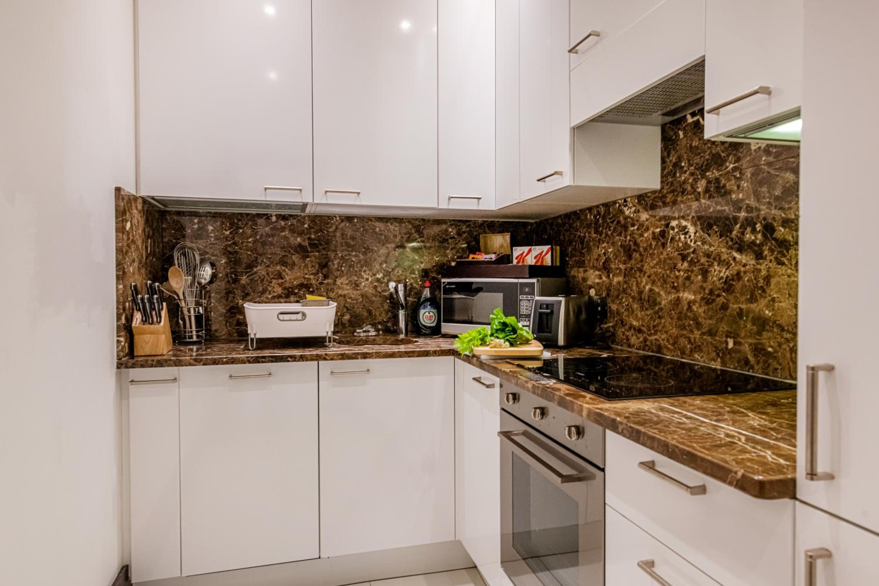 Excellent staff, very accommodating. Room was great. Be careful when you are booking. Not all 2 beds have 2 baths. The location was great. The apartment was well maintained and very easy access from both Gloucester and South Kensington. Kitchen was a both small, overall a great experience.