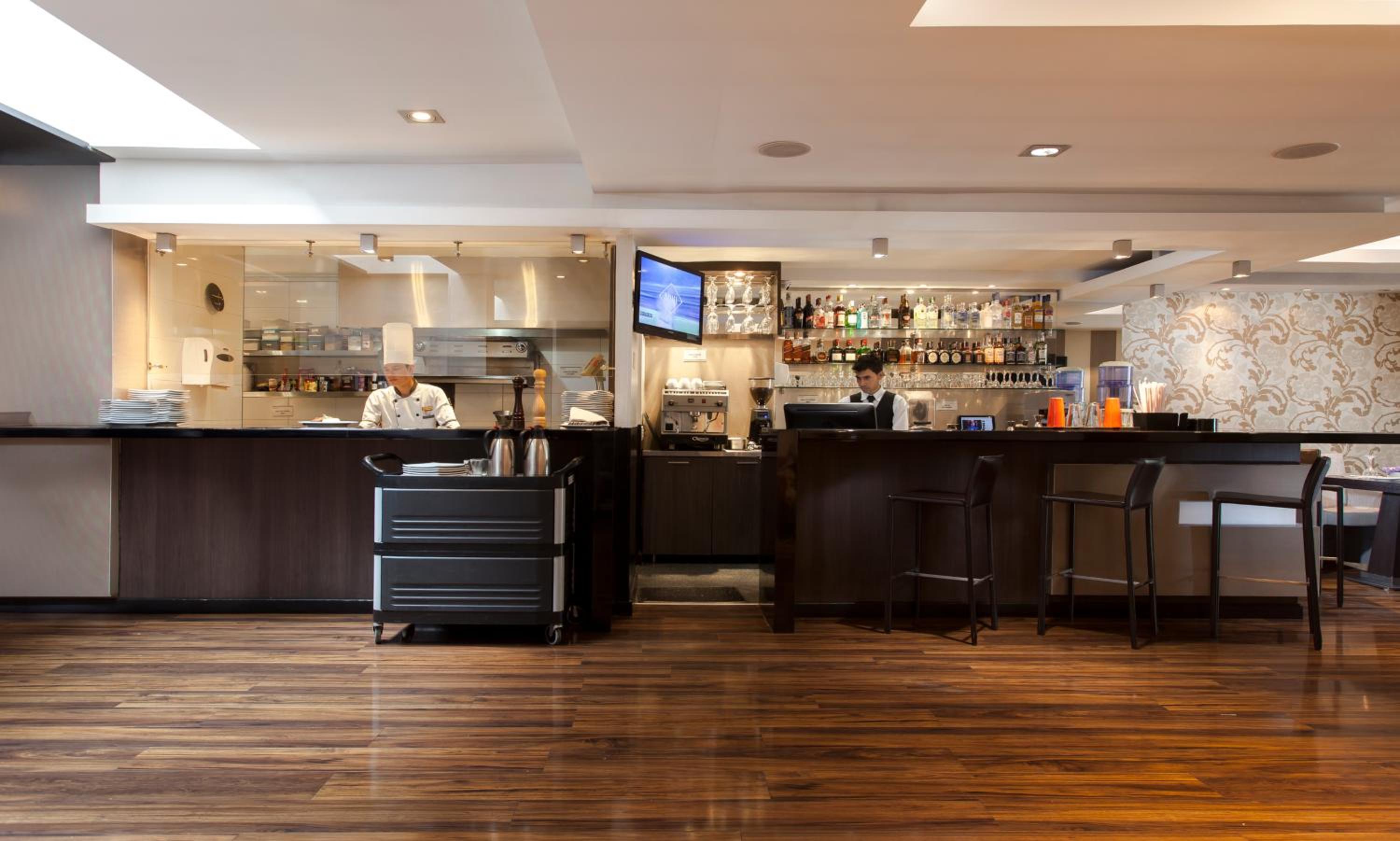Seems that the restaurant is not operating as such we reveived packed breakfast in our room which was cold and imferior quality. Also in the small kitchenette , hardly any utensils not even 2 cups of same size and design.