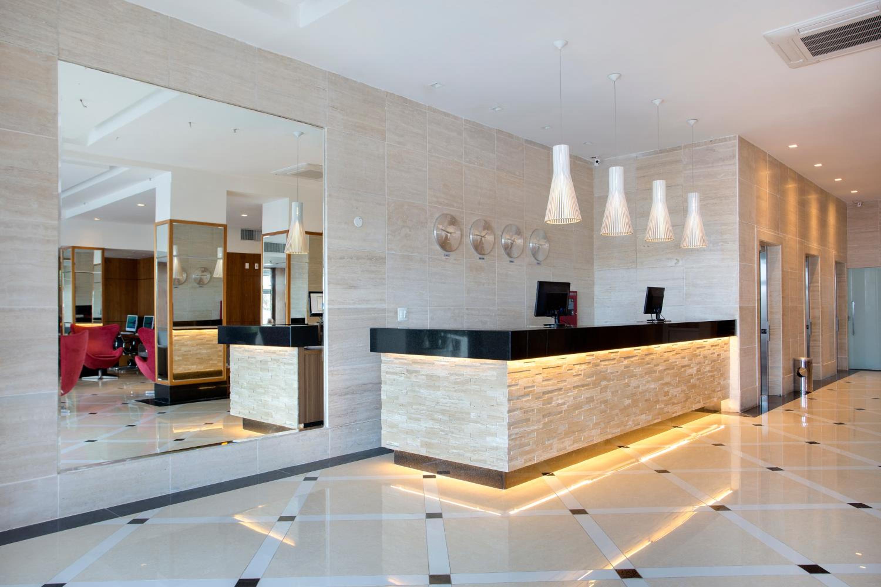 Os recepcionistas um pouco sem paciência e de resposta curta e grossa. O hotel muito barulhento, principalmente a noite, nem falo da obra que tinha no prédio ao lado, mas de barulhos altos do chuveiro dos quartos vizinhos e dos hóspedes nas áreas comuns. Barulhos esses que incomodavam o sono a noite.