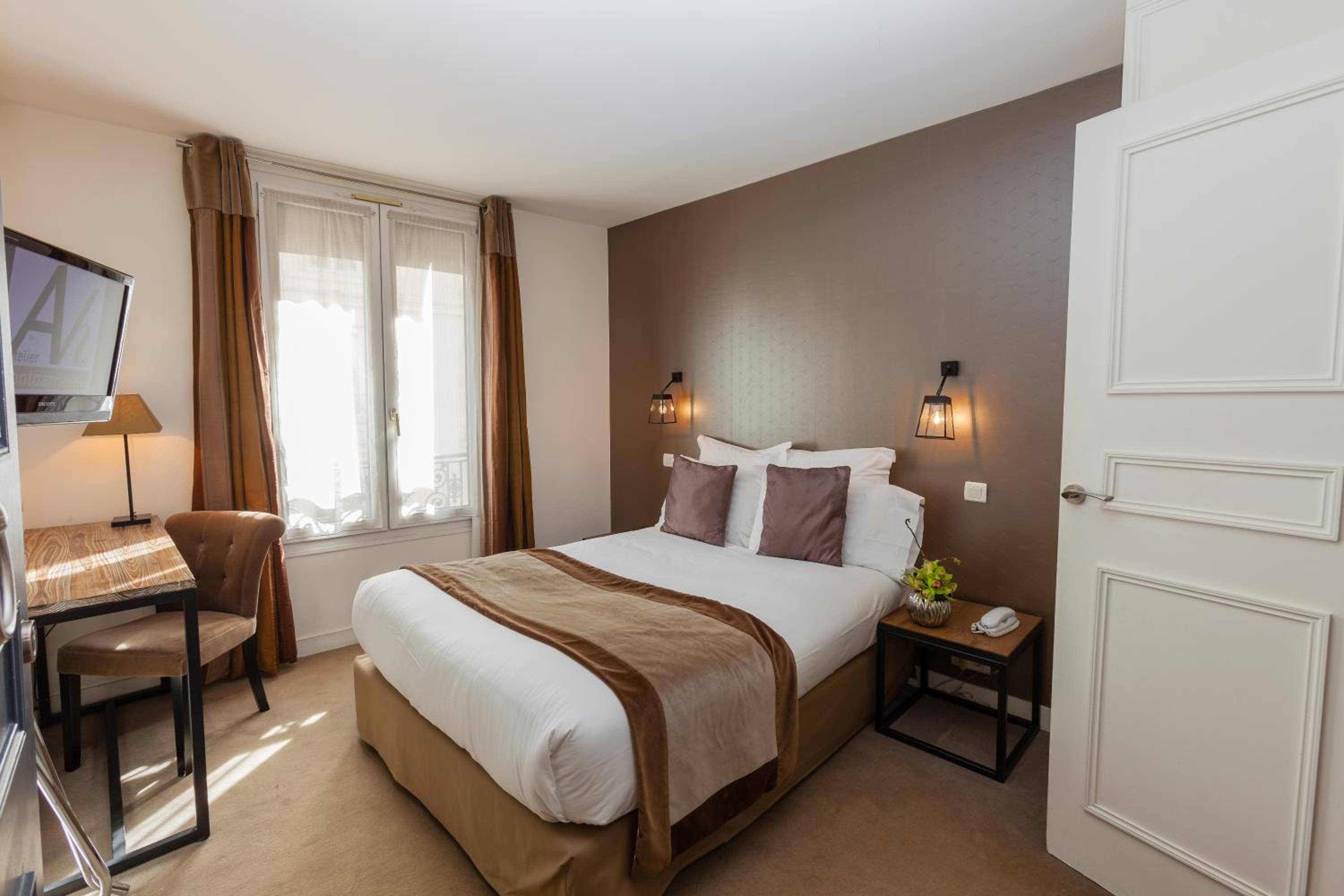 Luxurious Amenities: At Atelier Montparnasse, guests can enjoy air-conditioned rooms with modern amenities such as flat-screen TVs, minibars, and safety boxes. The private bathrooms are elegantly designed with either a shower or tub and include a hairdryer for convenience.
