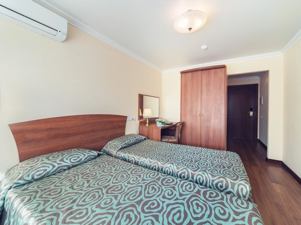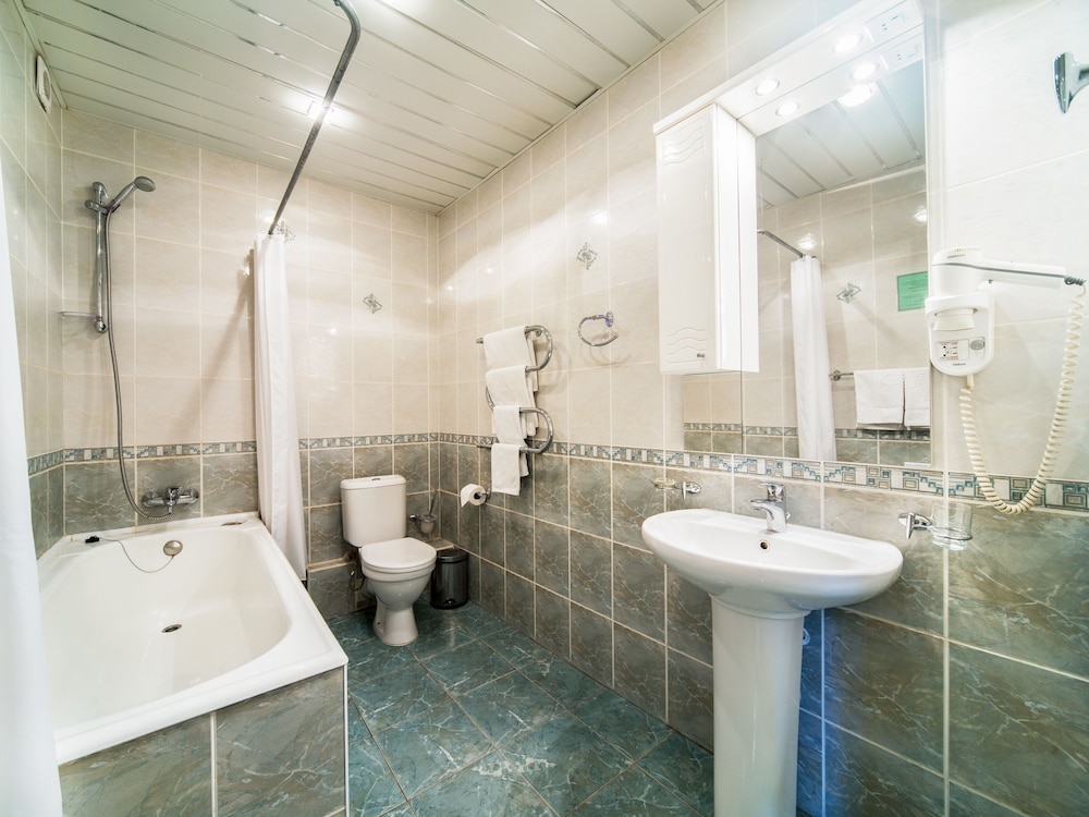 Отель вполне нормальный. Чистоту соблюдают: мусор из номера выносят регулярно, по углам пыли нет. По качеству обслуживания удовлетворительно: не хамят, но постоянно ждут от тебя дополнительных денег (за кофе, тортики, за заказ еды в номер), усиленно намекают на это - отель расположен в центре и куда приятнее поесть или попить кофейку в бесконечных кафе по улице Красной Армии. Месторасположение очень удачное: открытое пространство перед входом в отель, парк за зданием администрации города и до лавры 15 минут прогулочным шагом. Однако вид из окон номера удручает - внутренний дворик отсутствует, приходится постоянно держать занавески закрытыми, т.к. номера расположены окна в окна друг к другу. Изначально бронировала специально вид из окон на лавру, однако при заселении по непонятной причине (наверно, надо было на ресепшене на лапу дать наличку - оплата у меня шла по карте через Hotels.com) заселили меня в номер с видом на "дворик"). Благо полтора дня из двух суток лавра была в густом тумане, так что с видом из окна все равно ничего бы не вышло. Но желание персонала побольше получить наличными и без кассовых чеков очень донимает.