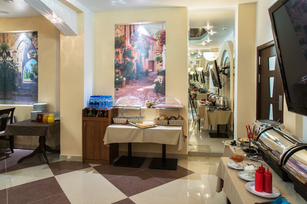 Отель находится в самом центре города, до основных достопримечательностей пешком 10 минут. Так же в Пашой доступности рестораны, кафе, продуктовые магазины. Большая бесплатная парковка на площади перед отелем. Сам отель нуждается в косметическом ремонте, но при этом номера чистые и светлые. Шумоизоляция вполне сносная. Персонал на рецепшене вежливый. Завтрак не входил в стоимость проживания, но его можно было заказать отдельно за 400 рублей (шведский стол).