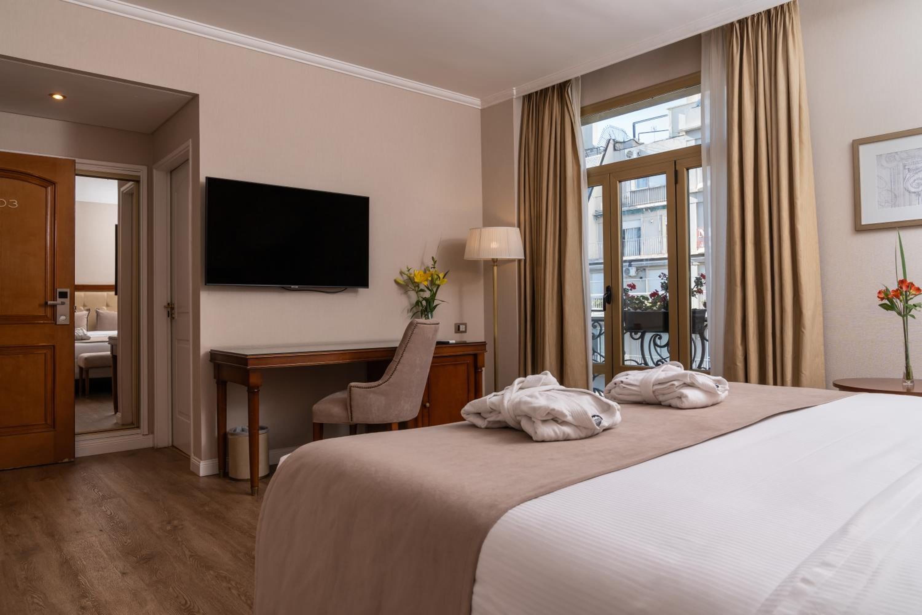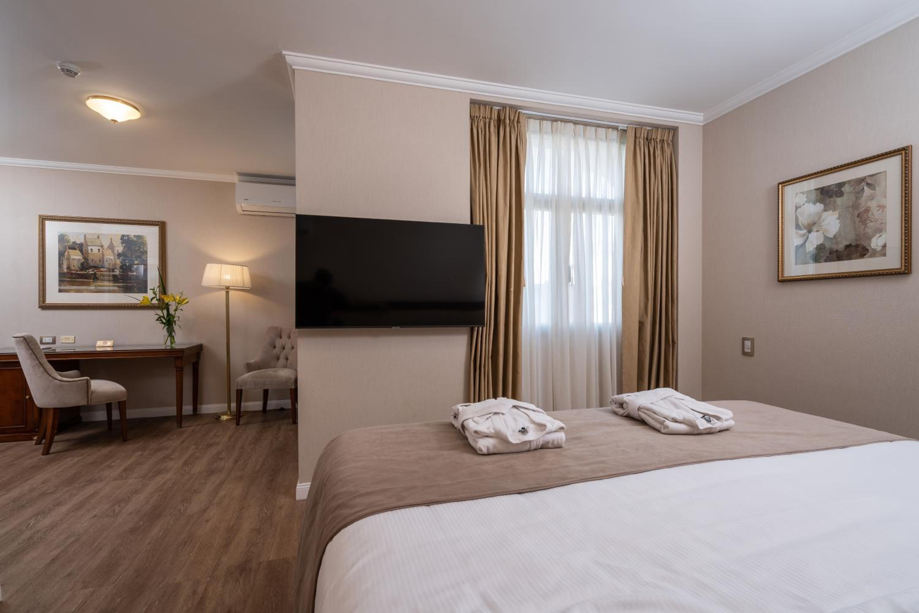 Relax in the elegant rooms adorned with plush amenities like flat-screen TVs and hydro massage tubs. Start your day with a delightful buffet breakfast at Recoleto Bar and savor Italian cuisine at Marcelo Restaurant with an exclusive wine menu.