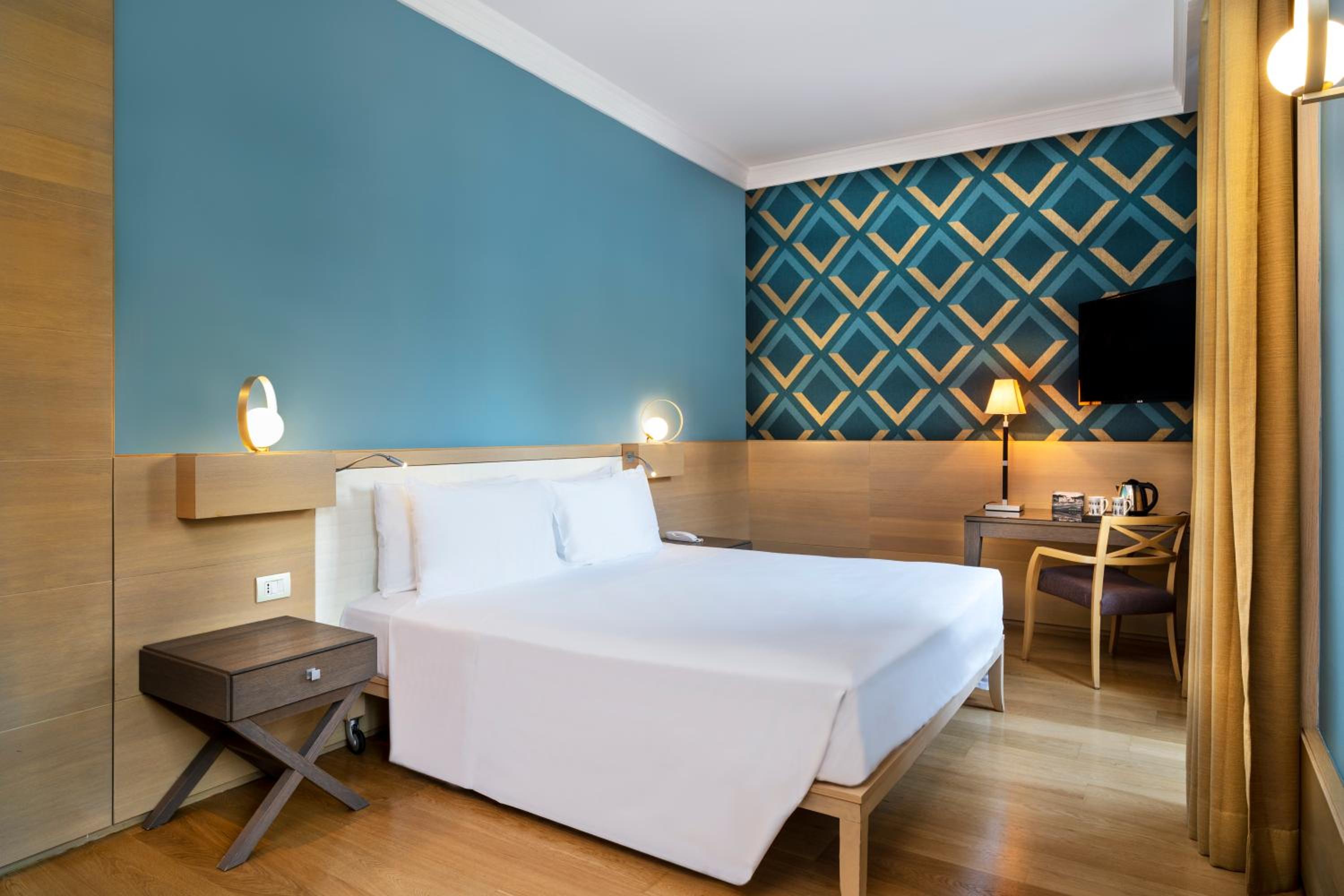 La camera. Soffocante, senza balcone, bagno piccolo e con poca privacy. Tv posizionata malissimo.